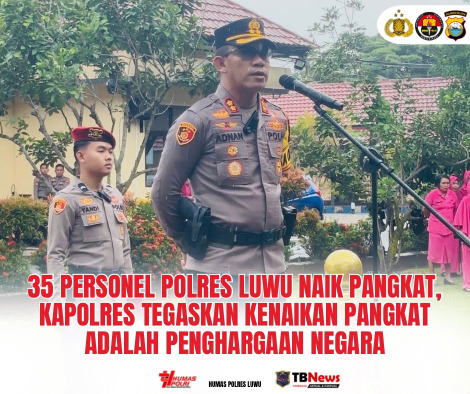 Dalam amanatnya, Kapolres Luwu AKBP Adnan Pandibu menyampaikan bahwa momen kenaikan pangkat bukan sekadar seremoni, melainkan wujud apresiasi institusi terhadap pengabdian anggota.