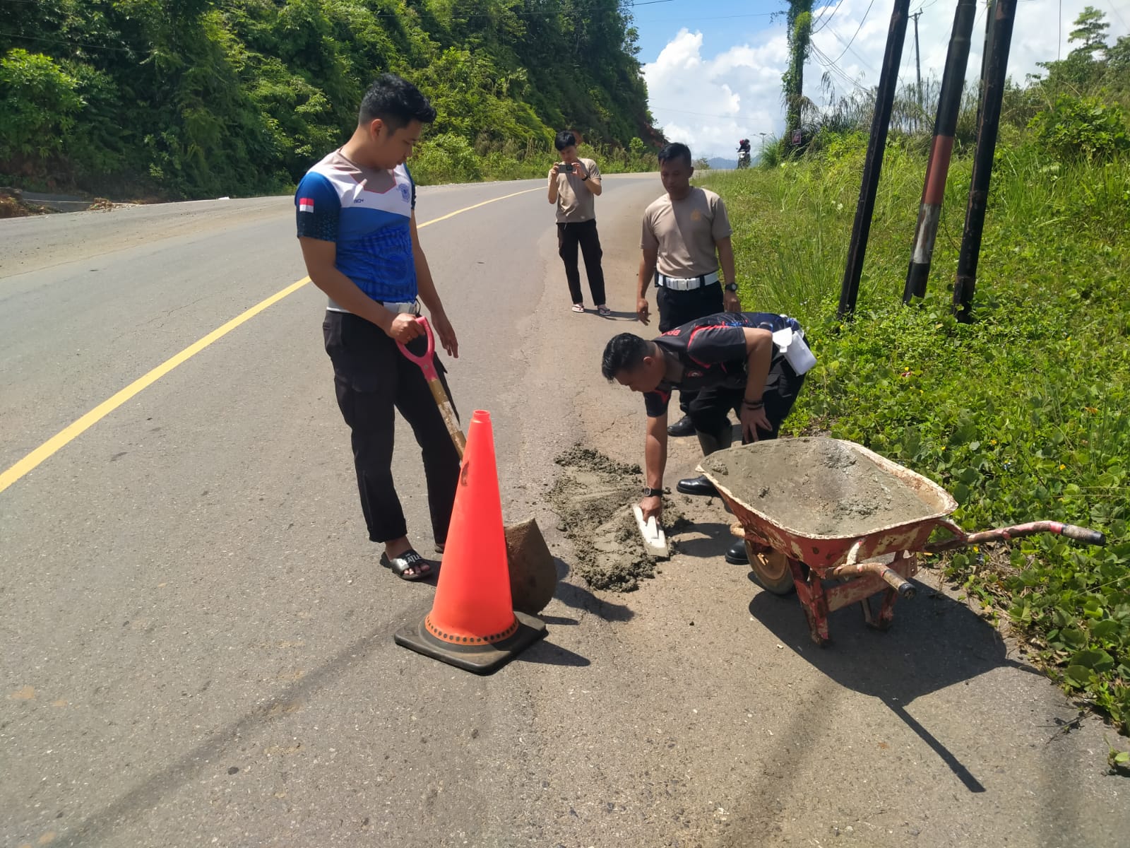 Aksi simpatik ini dipimpin langsung oleh Kasat Lantas Polres Konawe Utara Iptu Hery Mulyanto, S.H., M.H bersama Kasat Binmas Polres Konawe Utara Iptu Wawan Gunawan, S.H. Dengan menggunakan campuran semen dan material sederhana, personel kepolisian bahu-membahu menutup lubang-lubang jalan yang kerap memicu kecelakaan lalu lintas, terutama bagi pengendara roda dua.