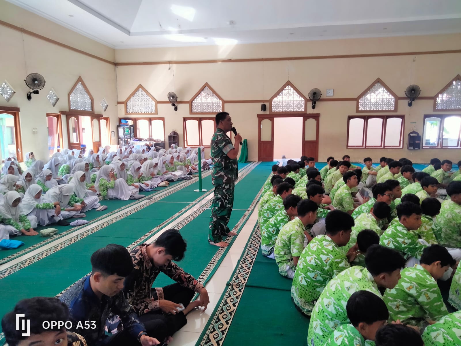 Surakarta – Babinsa Kelurahan Jebres Koramil 04/Jebres Kodim 0735/Surakarta Serka Taufik Muklis dan Serda Winarno memberikan materi Wawasan Kebangsaan dan Anti Buliying kepada siswa-siswi SMP Muhamadiyah 7 Surakarta , Jl. Tentara Pelajar 01 Jebres, Kamis (12/03/2026).