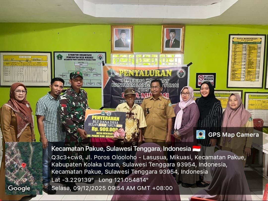 Kolaka, fokustime.id – Praka Achmad Mukminan, Babinsa Koramil 05/Pakue Kodim 1412/Kolaka, melaksanakan kegiatan pendampingan dan pemantauan penyaluran Bantuan Langsung Tunai (BLT) Tahun Anggaran 2025 kepada warga penerima manfaat. Kegiatan ini bertempat di Desa Mikuasi, Kecamatan Pakue, Kabupaten Kolaka Utara. selasa (09/12/2025).