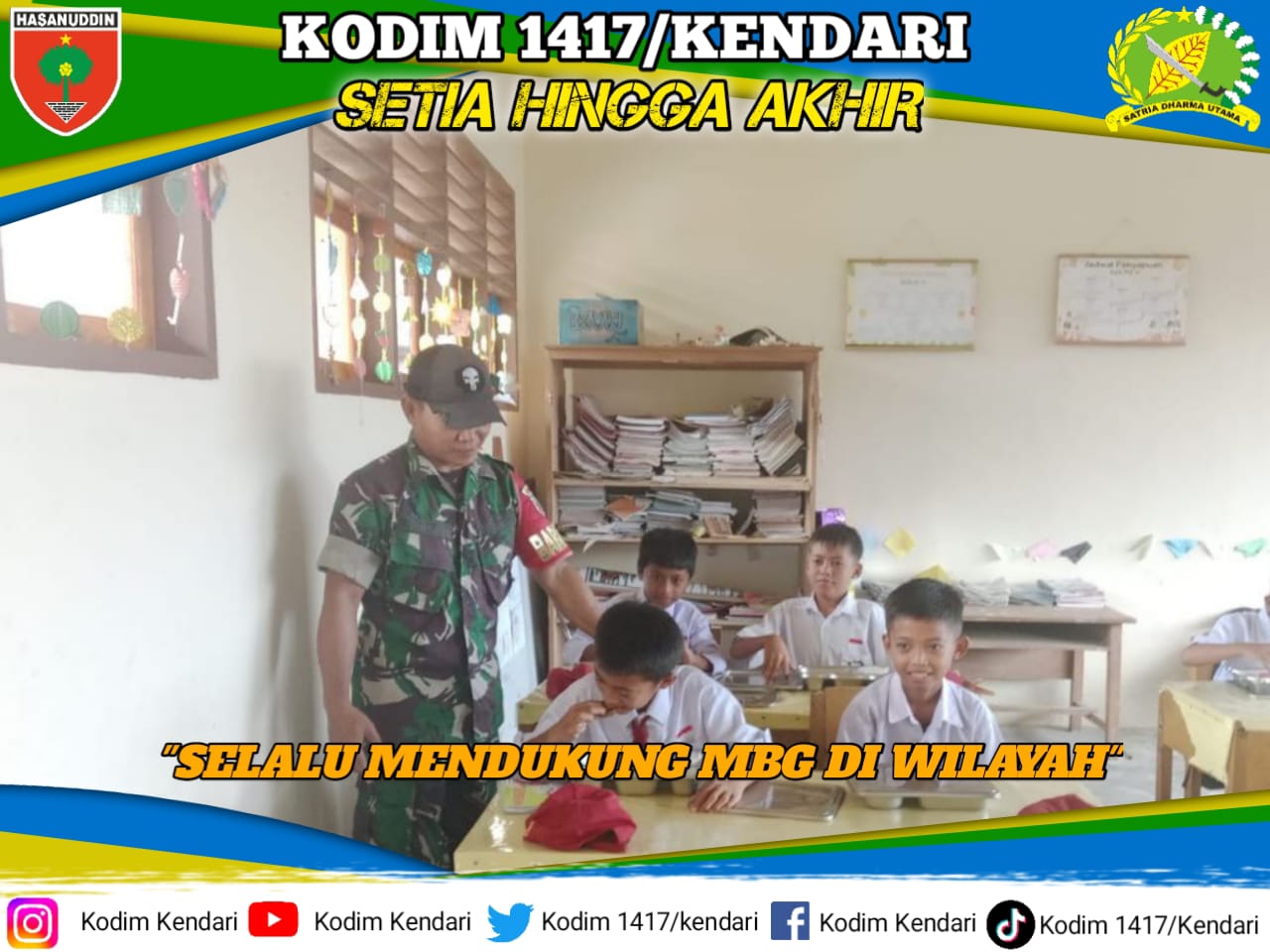 Konawe, fokustime.id_ Babinsa Koramil 1417-12/Soropia Kodim 1417/Kendari, Serka Masnur Nasir, melaksanakan pemantauan sekaligus pendampingan langsung dalam kegiatan Pelayanan Makan Bergizi Gratis (MBG) di wilayah Kecamatan Soropia, Kabupaten Konawe, Senin (19/1).