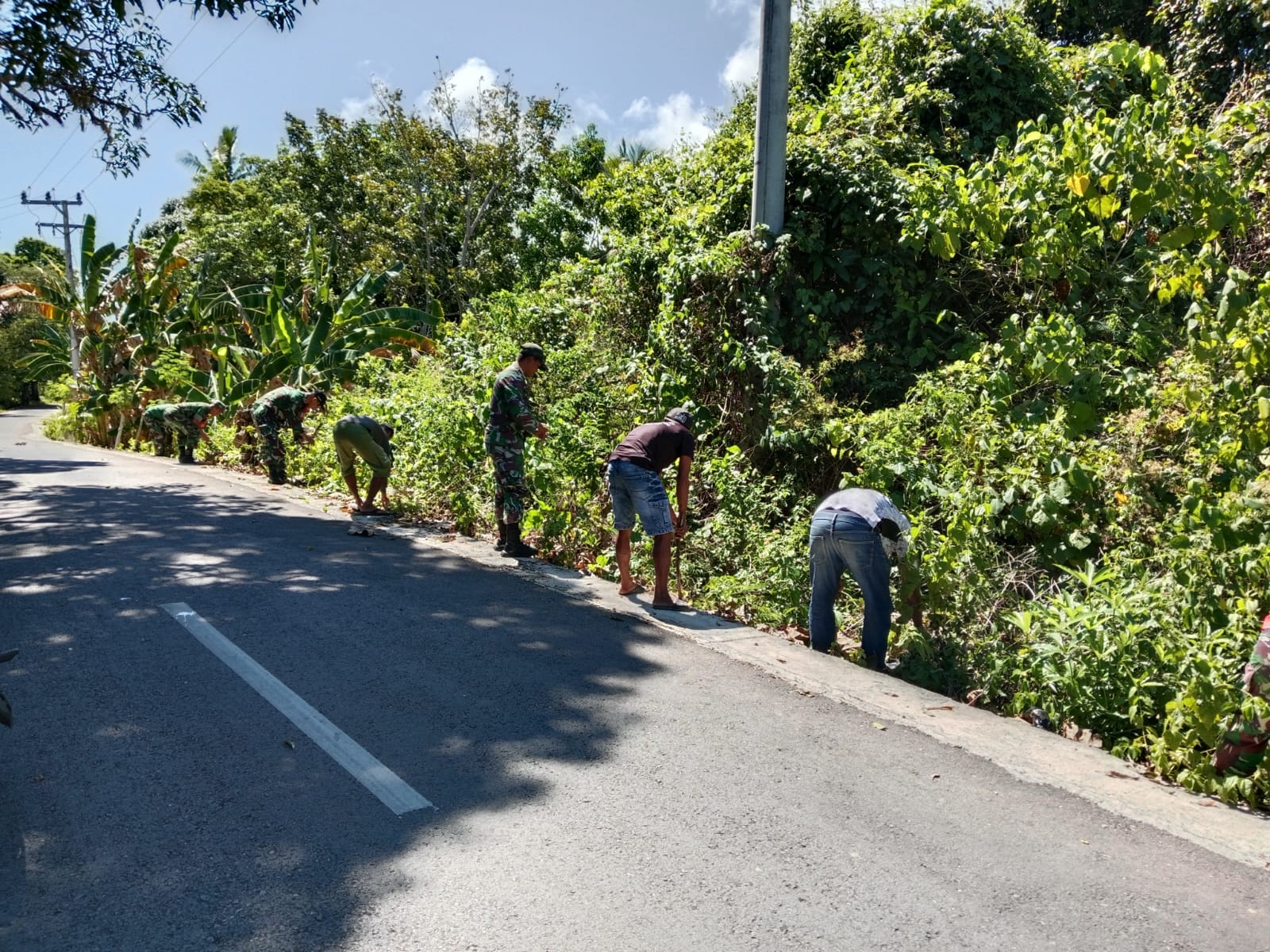 Kegiatan yang berlangsung penuh semangat gotong royong ini dimulai sejak pagi hari. Babinsa bersama masyarakat bergotong royong membersihkan rumput liar, sampah, serta endapan lumpur yang menyumbat saluran air di sepanjang jalan utama kelurahan.