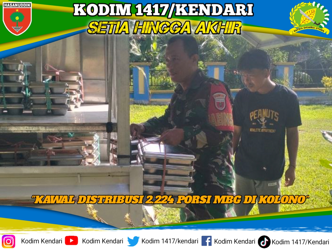 Konsel ,fokustime.id_ Babinsa Koramil 1417-04/Lainea Kodim 1417/Kendari, Sertu Hardin, secara aktif mendampingi pelaksanaan program Makan Bergizi Gratis yang menyasar sejumlah sekolah di wilayah Kecamatan Kolono pada Senin (6/4).