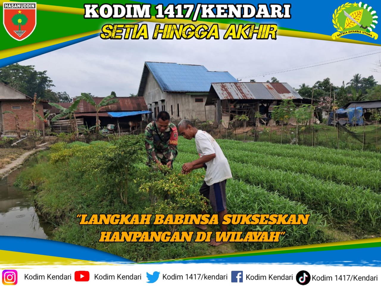 Konsel ,fokustime.id– Babinsa Koramil 1417-09/Ranomeeto Kodim 1417/Kendari, Sertu Munapri, melaksanakan kegiatan pemantauan di bidang ketahanan pangan dengan menyambangi kebun sayuran milik warga di Desa Wonua, Kecamatan Konda, Kabupaten Konawe Selatan pada Minggu (4/1).