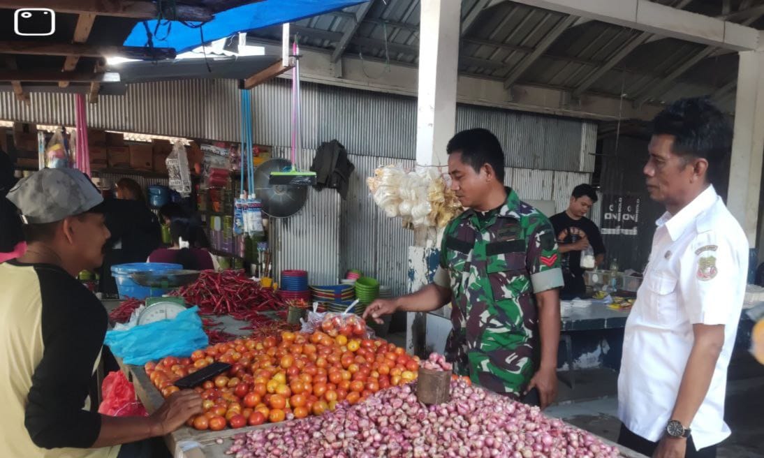 SIDRAP, fokustime.id– Babinsa Koramil 1420-01/Panca Lautang, Koptu Parondongan, melaksanakan kegiatan pemantauan intensif terhadap ketersediaan dan stabilitas harga bahan pokok di Pasar Sentral Bilokka, Desa Corawali, Kecamatan Panca Lautang, Kabupaten Sidrap, Rabu (15/10/2025).