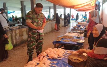 Babinsa Koramil 1420-01/Panca Lautang Pantau Ketersediaan dan Harga Bahan Pokok serta Jaga Keamanan Pasar Sentral Bilokka