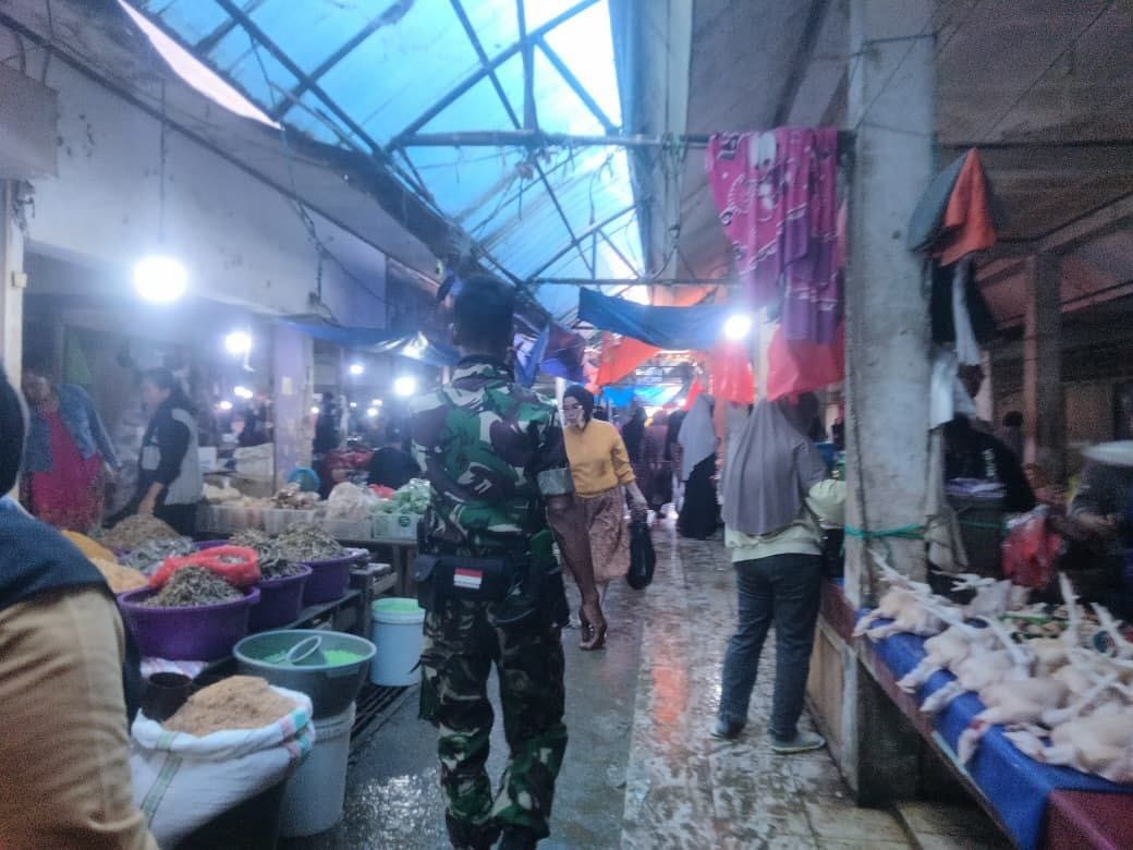 Selain fokus pada perkembangan harga, Serka Samsul Karya juga turut memastikan kondisi keamanan dan ketertiban di sekitar area pasar agar proses transaksi jual beli dapat berjalan lancar dan kondusif.