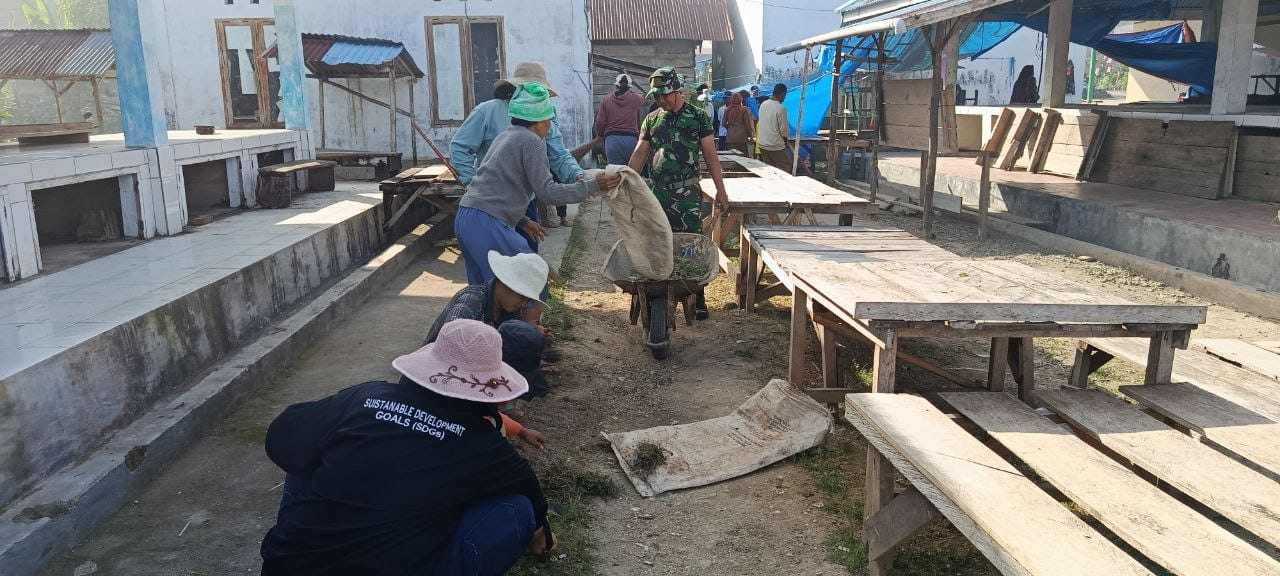 Buton ,fokustime.id– Babinsa Koramil 1413-03/Kapontori bersama warga dan para siswa melaksanakan kegiatan kerja bakti pembersihan Pasar Mabulugo sebagai wujud kepedulian terhadap kebersihan lingkungan serta penguatan kemanunggalan TNI dengan rakyat, Kamis (5/3/2026).