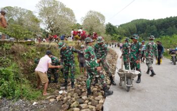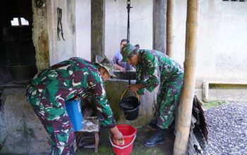 Kegiatan kerja bakti tersebut dilaksanakan di Desa Mabulugo, Kecamatan Kapontori, Kabupaten Buton, dipimpin langsung oleh Babinsa Koramil 1413-03/Kapontori Pelda Faliyu bersama anggota Babinsa.