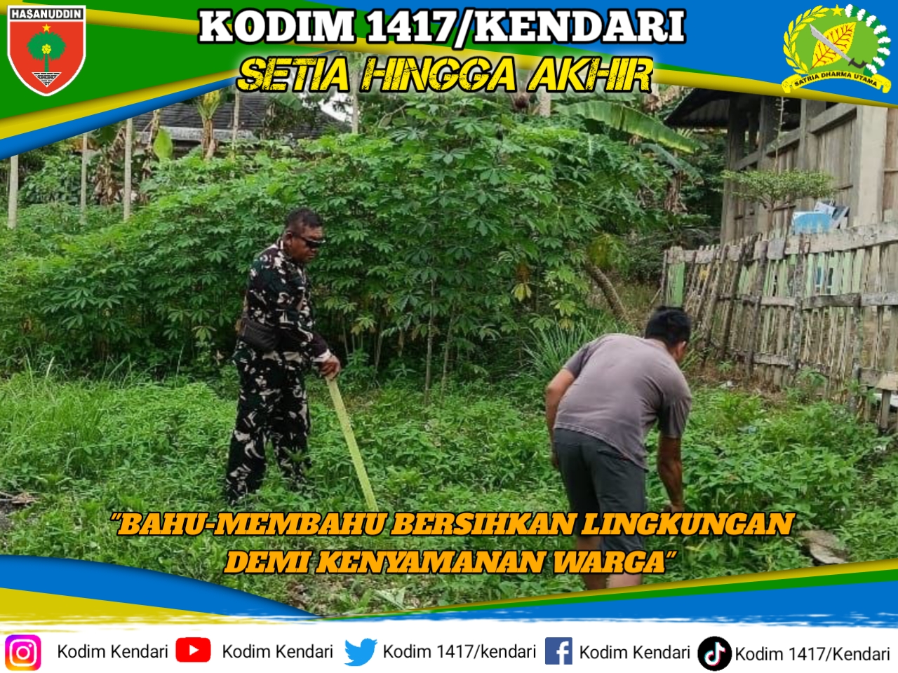 Kendari ,fokustime.id_ Sebagai bentuk pengabdian tanpa batas dan bukti nyata kemanunggalan TNI dengan rakyat, Babinsa Koramil 1417-11/Poasia Kodim 1417/Kendari Peltu Ade Komarudin terjun langsung melaksanakan aksi kerja bakti bersama masyarakat di Kelurahan Anduonohu, Kecamatan Poasia, Kota Kendari, Sabtu (4/4).