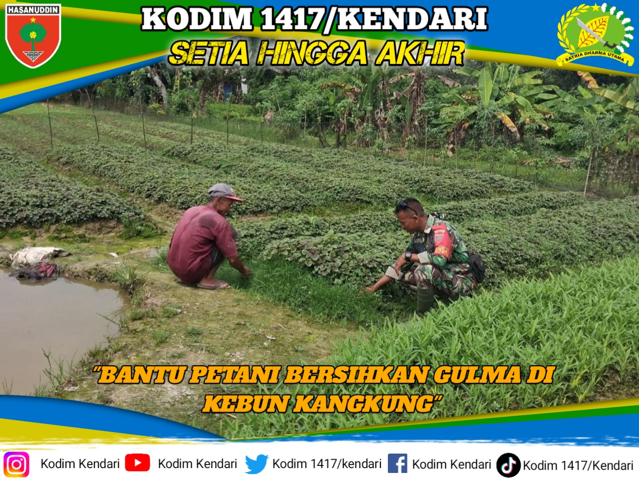 Tanpa canggung, Sertu Hasan bersama petani bergotong-royong mencabuti gulma yang mengganggu pertumbuhan tanaman sayur.
