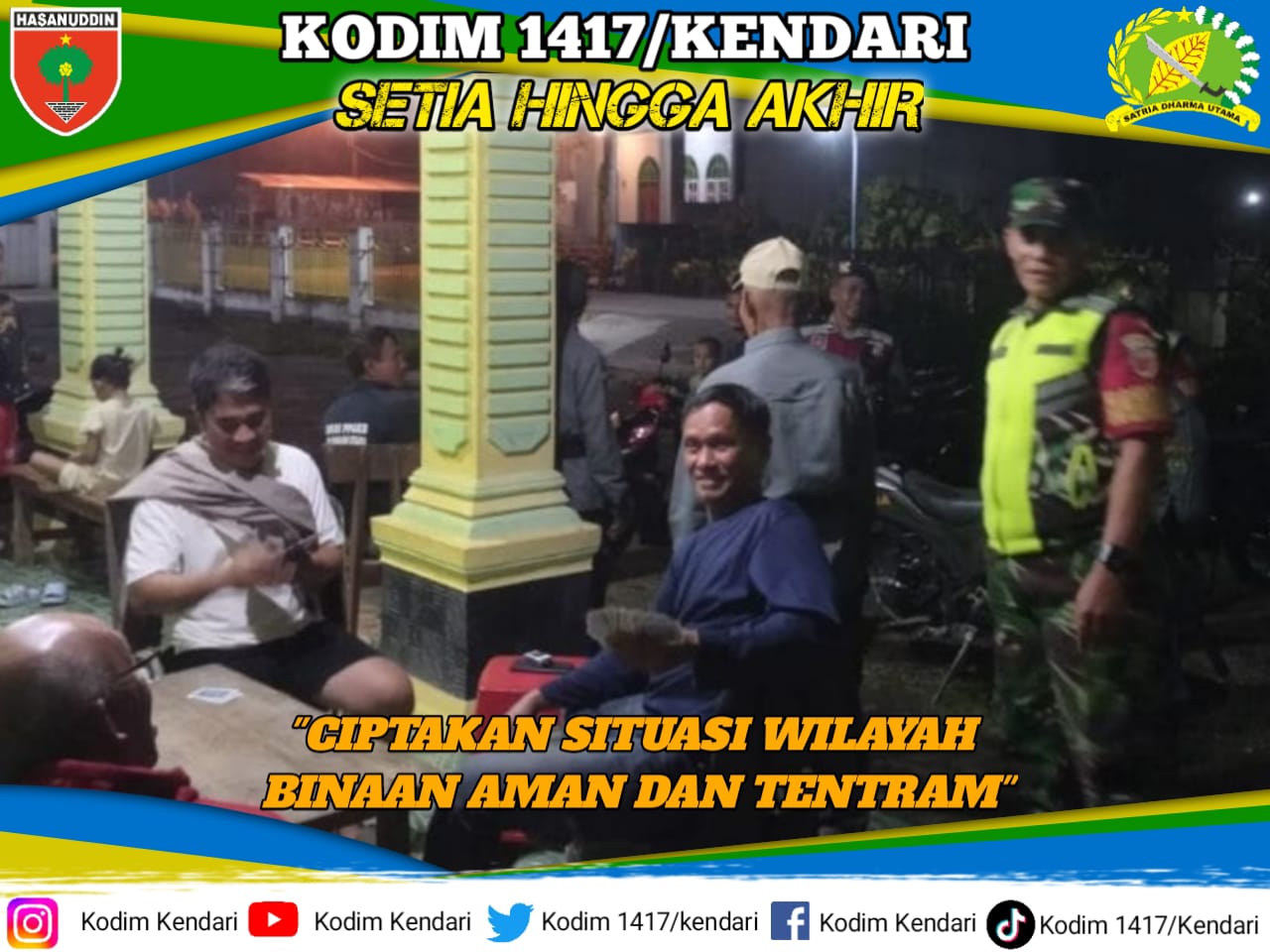 Konawe, fokustime.id_ Demi mewujudkan lingkungan yang aman dan kondusif, Babinsa Koramil 1417-02/Wawotobi Kodim 1417/Kendari menunjukkan komitmennya melalui patroli malam gabungan yang intensif. Kegiatan yang dipusatkan di Desa Sanggona, Kecamatan Konawe, Kabupaten Konawe, pada Sabtu (25/10) malam ini, bukan sekadar patroli biasa, melainkan sebuah aksi sapa warga yang humanis.