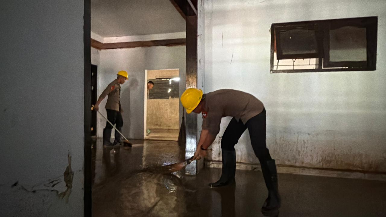 Dengan menggunakan peralatan manual dan mesin pompa air, para personel membantu warga mengeluarkan material lumpur tebal yang masuk ke dalam ruang tamu hingga dapur. Aksi ini dilakukan untuk meringankan beban masyarakat, terutama lansia dan keluarga yang kesulitan membersihkan sisa banjir sendirian.