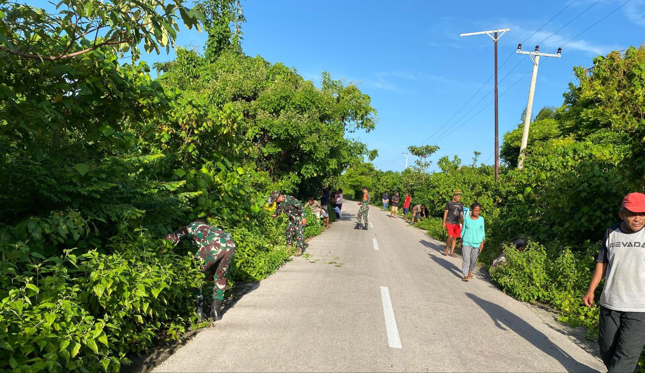 Kerja bakti ini melibatkan unsur TNI, pemerintah desa, dan masyarakat setempat. Turut hadir Kepala Desa Boniatiro beserta perangkatnya yang bersama-sama dengan warga bahu-membahu membersihkan sisi jalan dari rumput dan sampah yang mengganggu akses.