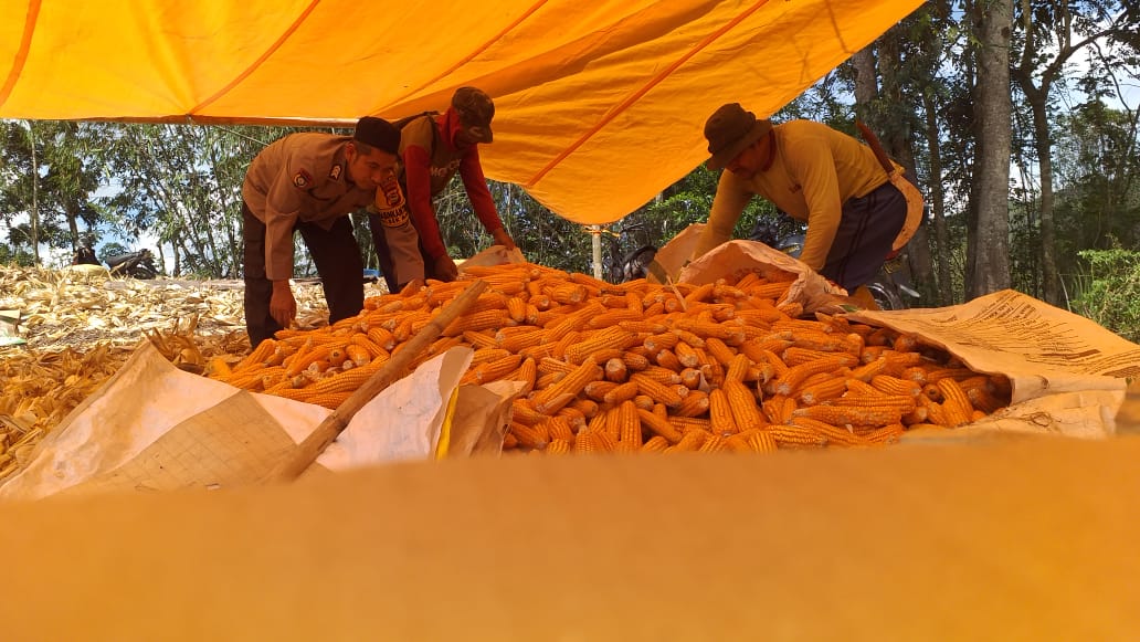 BHABINKAMTIBMAS BERSAMA KELOMPOK TANI DESA BUNTU BATUAN PANEN JAGUNG PROGRAM KETAHANAN PANGAN 1 HA/DESA