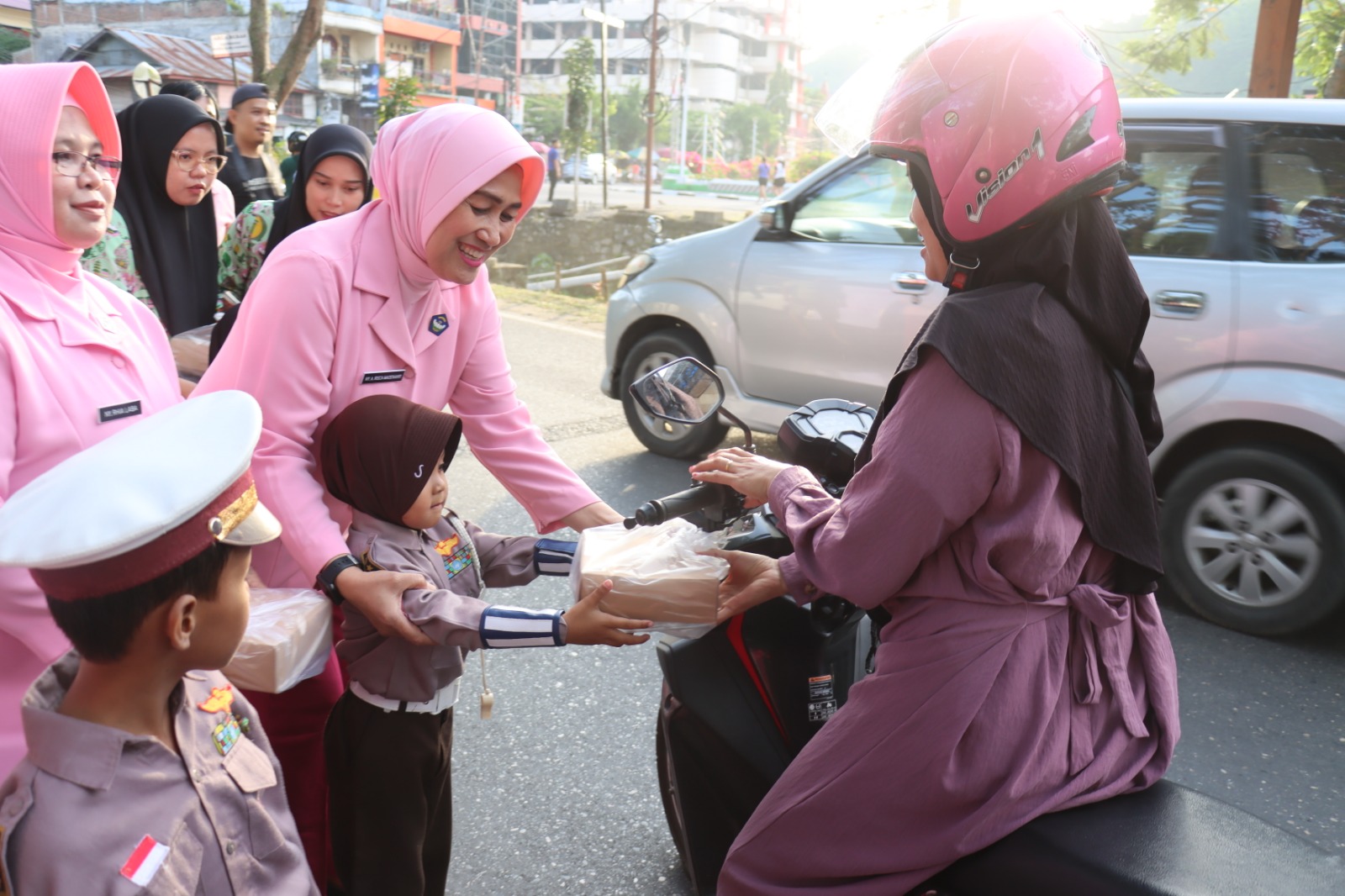 Dalam kegiatan tersebut, pengurus Bhayangkari bersama personel Polres Tana Toraja turun langsung ke jalan membagikan paket takjil kepada pengendara roda dua, roda empat, serta masyarakat yang melintas. Menariknya, kegiatan ini juga melibatkan empat Polisi Cilik (Pocil) yang turut mendampingi Bhayangkari dalam membagikan takjil kepada para pengendara.