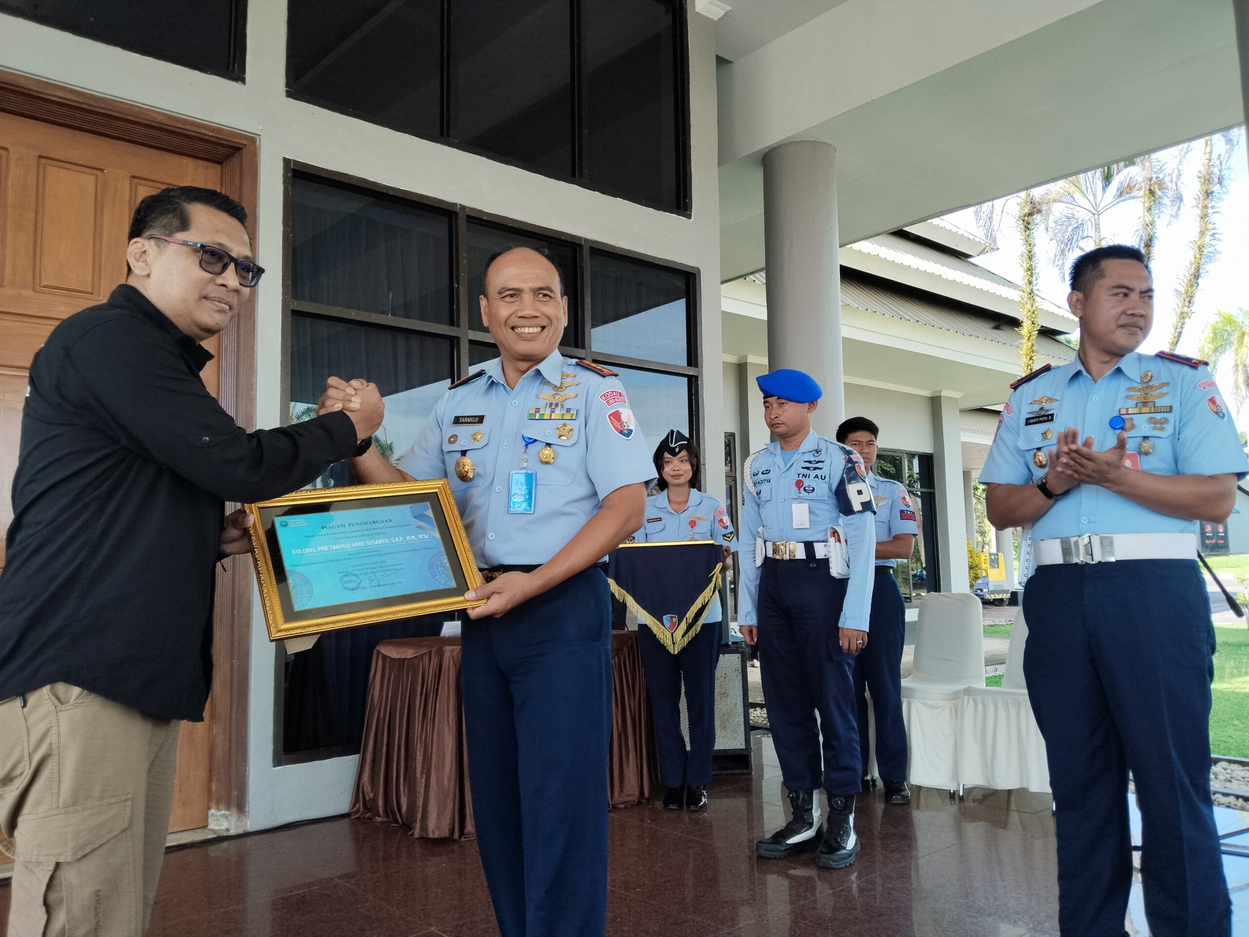 Penghargaan ini diserahkan dalam sebuah acara seremonial di Mako Lanud Haluoleo, Kamis, 13/11/2025, sebagai bentuk pengakuan atas sinergi yang luar biasa antara Lanud Haluoleo dengan Badan Narkotika Nasional Provinsi (BNNP) Sultra khususnya dalam pengawasan dan pengamanan wilayah udara dan area Bandara Haluoleo.