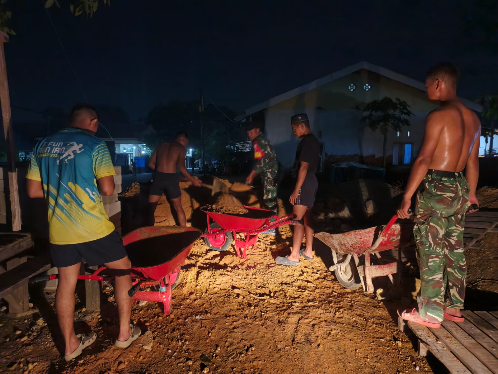 Suasana kebersamaan begitu kental terasa saat peluh membasahi seragam loreng di bawah temaram lampu, merajut asa demi menghadirkan hunian yang lebih layak dan nyaman.