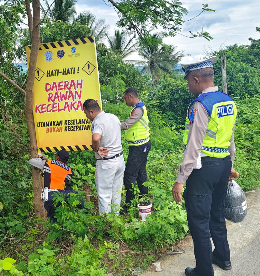 Cegah Kecelakaan Lalu Lintas, Sat Lantas Polres Buton Pasang Spanduk di Titik Rawan Kecelakaan