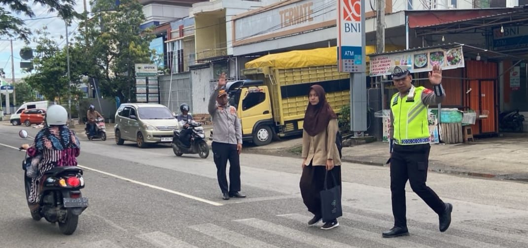 Salah satu pelayanan yang rutin diberikan adalah membantu menyeberangkan anak-anak sekolah dan pejalan kaki lainnya. Petugas juga kerap mengingatkan para pengendara untuk selalu menggunakan helm dengan benar serta memperhatikan aturan berkendara.
