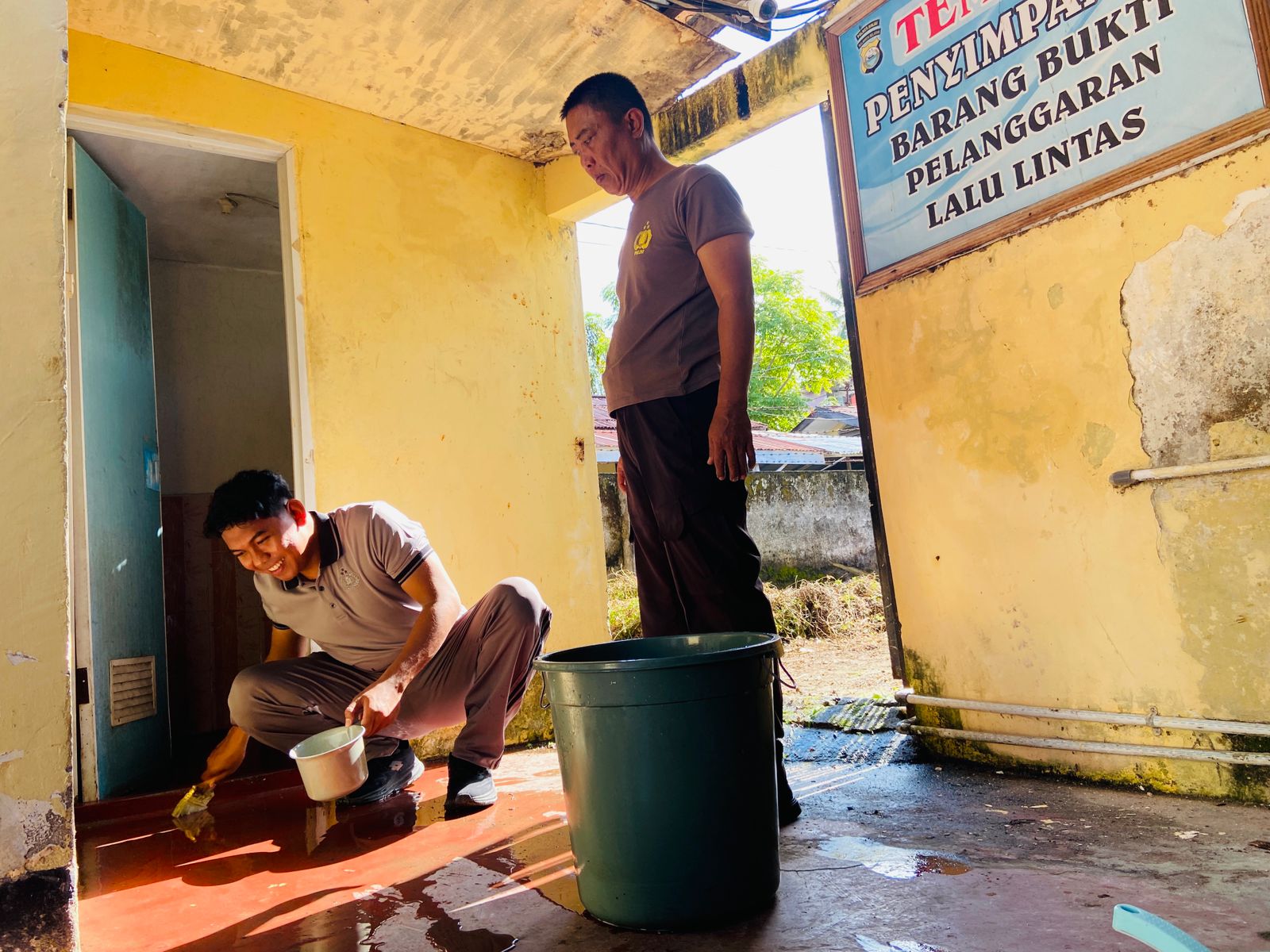 Suasana kebersamaan tampak saat personel saling bekerja sama membersihkan setiap sudut lingkungan kantor. Dengan menggunakan berbagai peralatan kebersihan, mereka memastikan area kerja tetap bersih, rapi, dan nyaman untuk digunakan.
