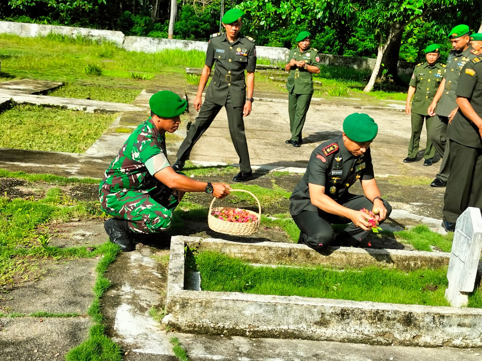 Baubau ,fokustime.id— Komandan Kodim (Dandim) 1413/Buton Letkol Inf Arif Nofiyanto, S.E., memimpin upacara ziarah rombongan dalam rangka memperingati Hari Juang TNI Angkatan Darat (TNI AD) Tahun 2025 di Taman Makam Pahlawan (TMP) Oputa Yikoo, Jalan Pahlawan, Kelurahan Kadolo Katapi, Kecamatan Wolio, Kota Baubau, Kamis (11/12/2025).
