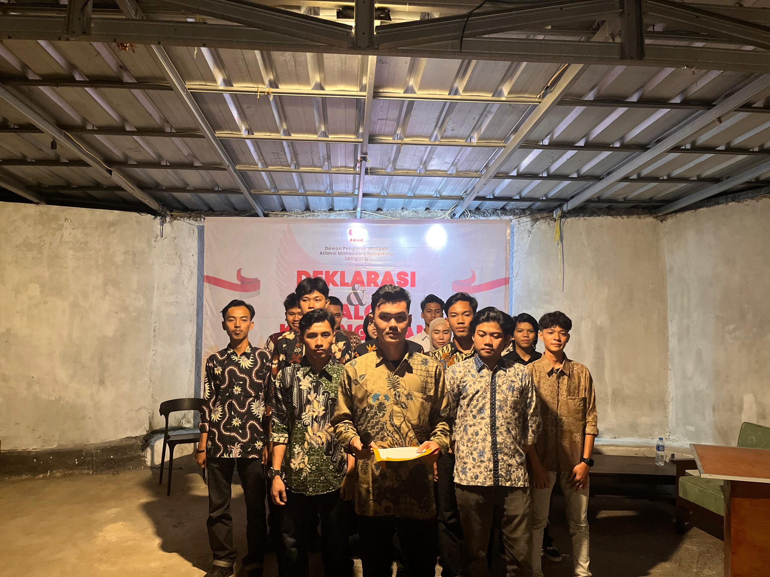 Kota Bandar Lampung,fokustime.id- Dewan Pengurus Wilayah Aliansi Mahasiswa Nusantara (DPW AMAN) Provinsi Lampung melaksanakan agenda deklarasi dan dialog kebangsaan dengan mengusung tema “mendukung pemberian gelar pahlawan untuk Soeharto”, yang dipusatkan di Rumah Kawan 2, Kedaton, Kota Bandar Lampung, pada Sabtu (8/11/2025).