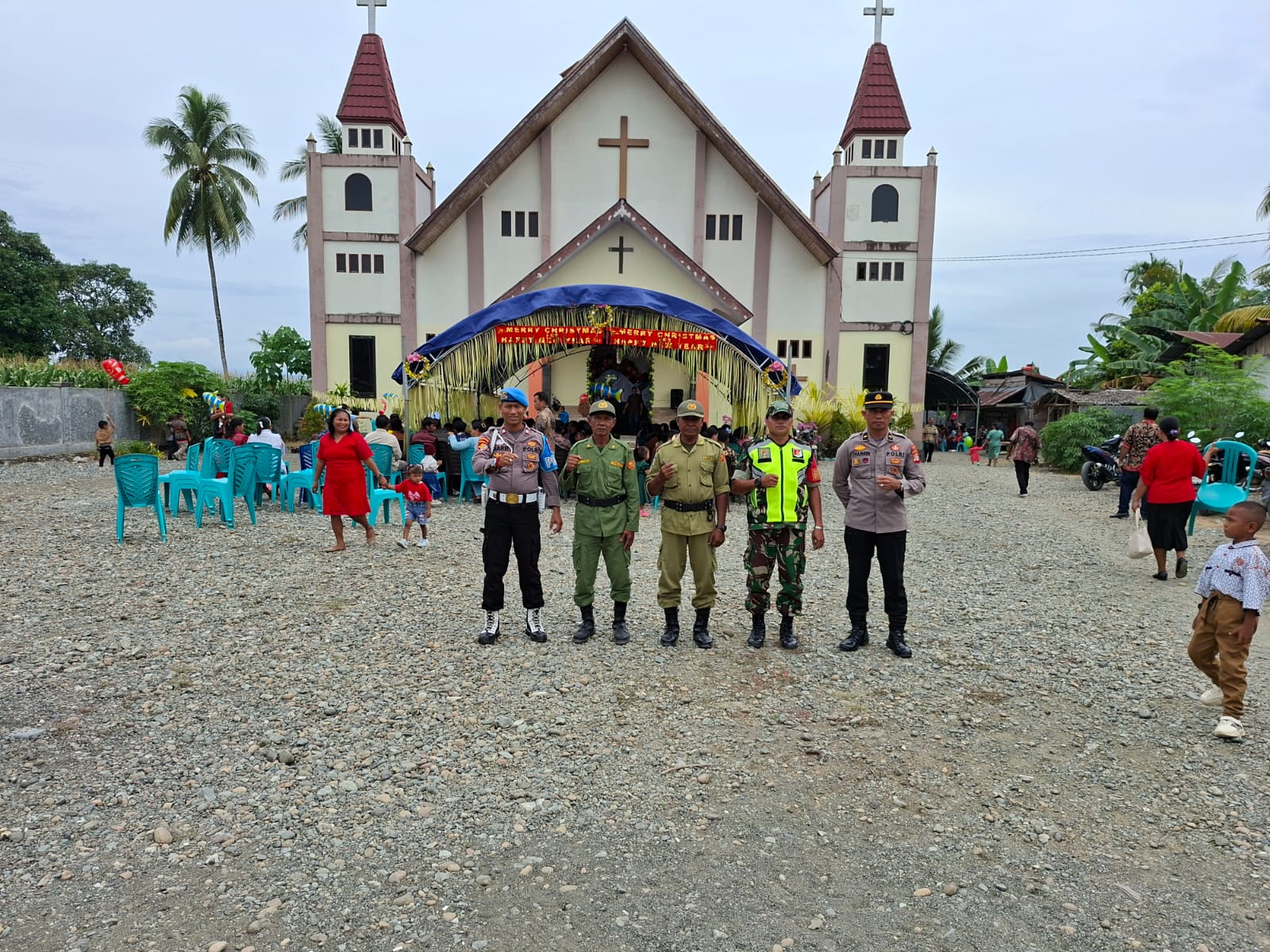 Banggai,fokustime.id – Jajaran Polres Banggai dibantu TNI dan stakeholder terkait All Out mengamankan ibadah Natal di seluruh gereja wilayah Kabupaten Banggai, Kamis (25/12/2025) pagi.
