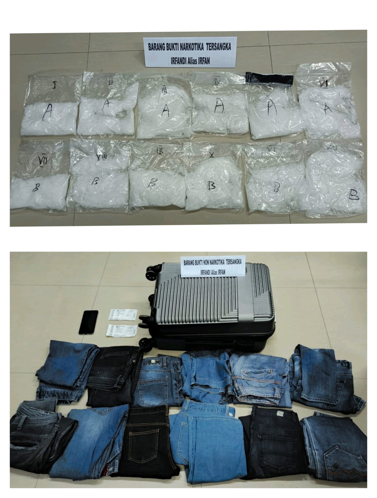 Selain sabu, petugas juga mengamankan sejumlah barang bukti lain, meliputi: satu unit ponsel Oppo A16 beserta kartu SIM, 12 potong celana jeans yang diduga digunakan untuk mengelabui petugas, koper Polo tempat penyimpanan sabu, Kartu Tanda Penduduk (KTP) atas nama Irfandi, serta dua boarding pass penerbangan (Padang-Jakarta dan Jakarta-Kendari).