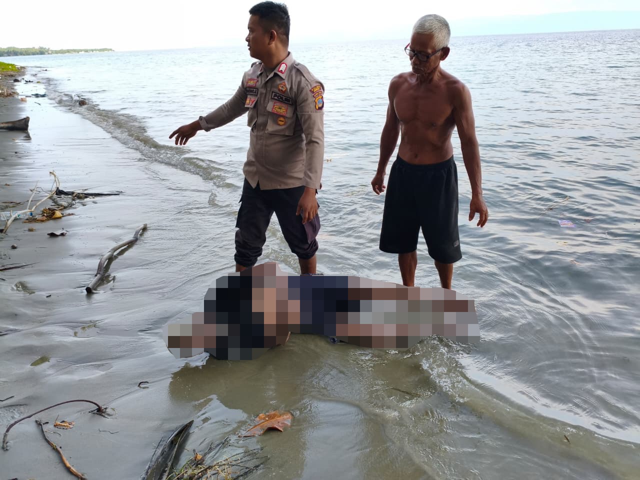 Sementara berjalan dibibir Pantai, tiba-tiba melihat sesosok mayat dalam keadaan mengapung. Karena kaget kedua anak langsung melaporkan kepada warga sekitar dan diteruskan ke pihak kepolisian.