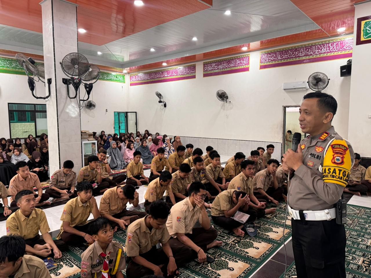 Dalam arahannya, AKP Muh. Arsyad secara khusus menekankan pentingnya penggunaan helm berstandar SNI bagi pengendara sepeda motor, termasuk pelajar.