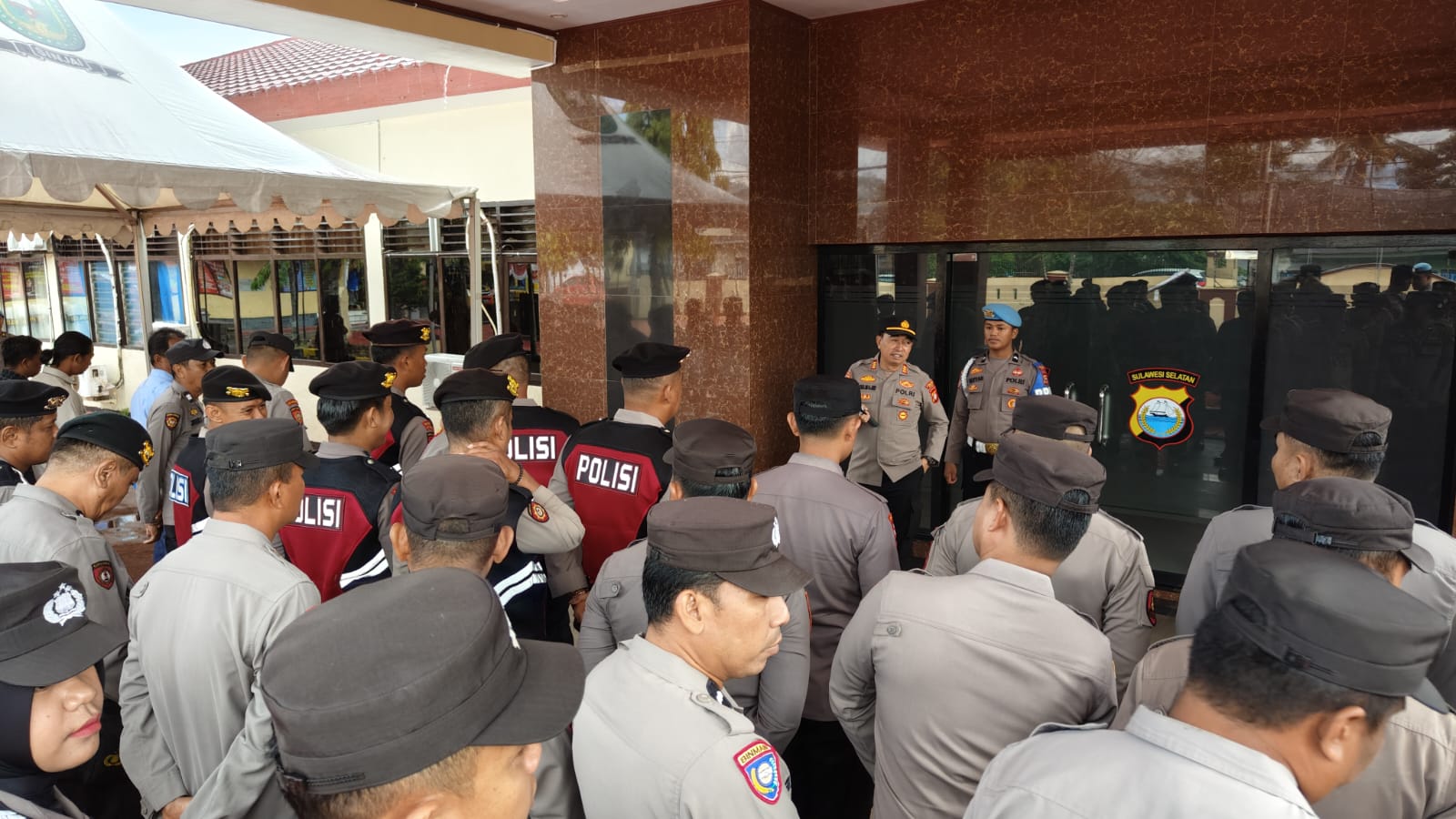 Turut hadir dalam apel pagi ini para pejabat utama Polres, para Kasat, Kasi, perwira staf, serta segenap personel Polres Sinjai. Meskipun hujan kegiatan tetap berlangsung tertib dan penuh semangat.