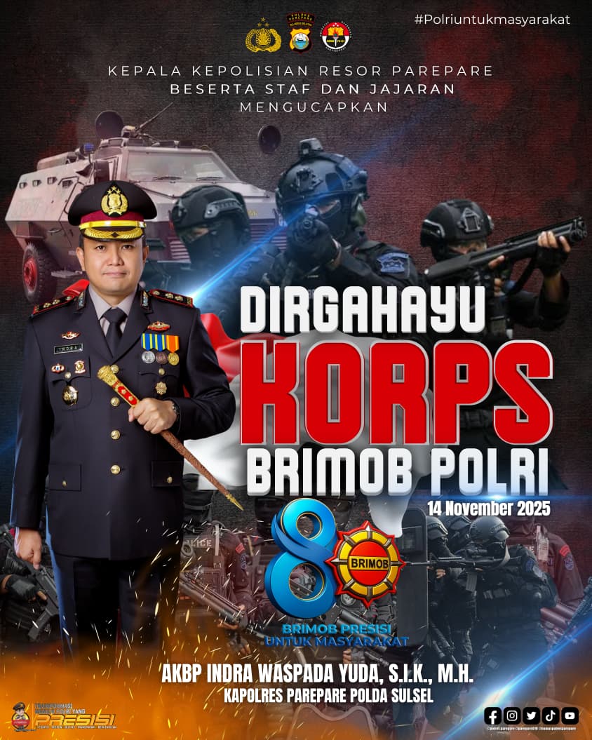 Saat berita ini ditayangkan, Jumat (14/11/2025), Kapolres AKBP. Indra Waspada Yuda sedang berada di Makosat Brimob Polda Sulsel yang terletak di Jalan K.S. Tubun, Makassar, menghadiri acara syukuran peringatan Hari yang sangat bersejarah bagi Korps Brimob Polri.