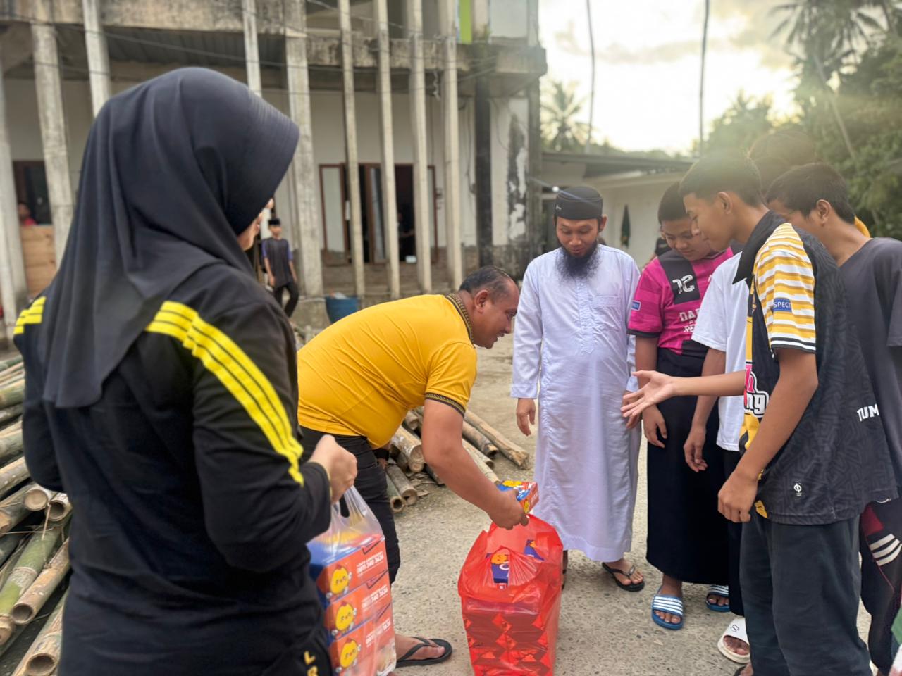 Kapolres Enrekang AKBP Hari Budiyanto, SH, S.IK, MH terpantau membagikan langsung bantuan berupa nasi kotak kepada anak-anak serta pengurus Ponpes.
