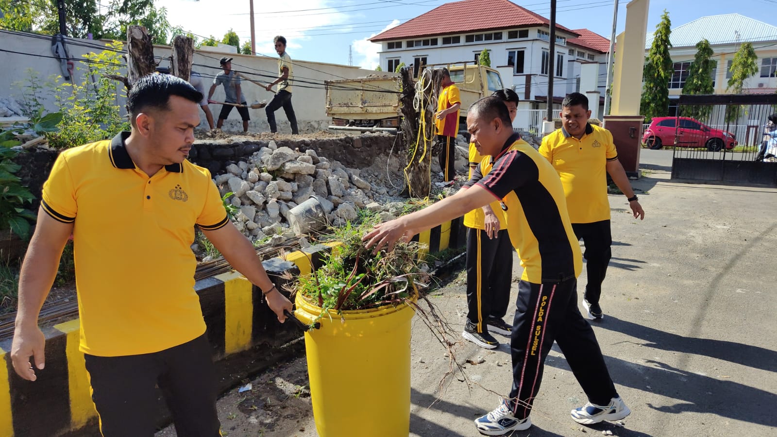 Kegiatan tersebut melibatkan semua anggota secara bersama- sama, dengan penuh semangat bahu-membahu membersihkan area sekitar Mako Polres Sinjai.