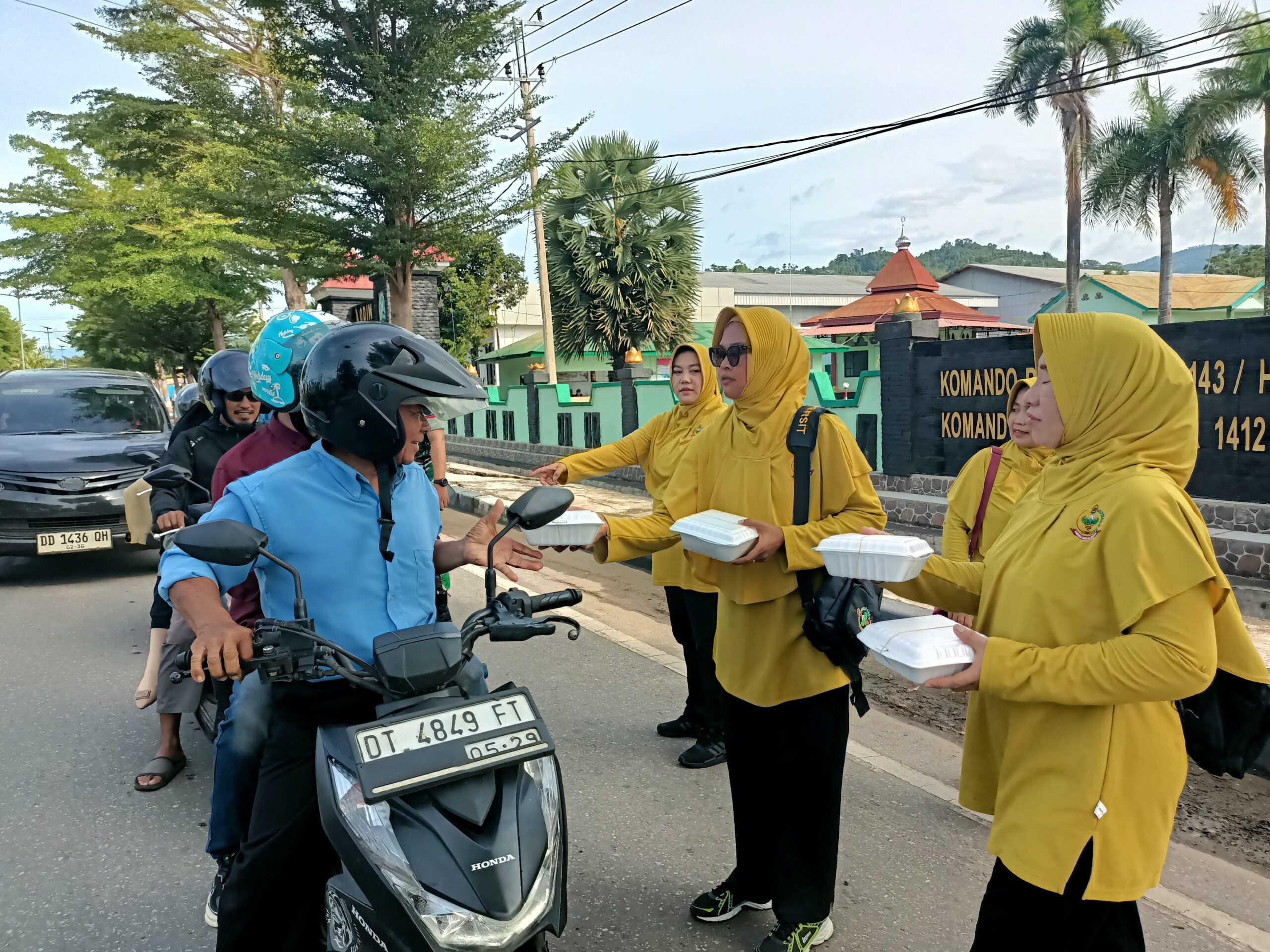 Dalam pelaksanaan kegiatan ini, Persit membagikan paket makanan kepada para pengguna jalan seperti tukang ojek, sopir kendaraan, dan masyarakat yang melintas. Mereka yang melintas tampak antusias dan merasa terbantu dengan adanya pembagian makanan tersebut.