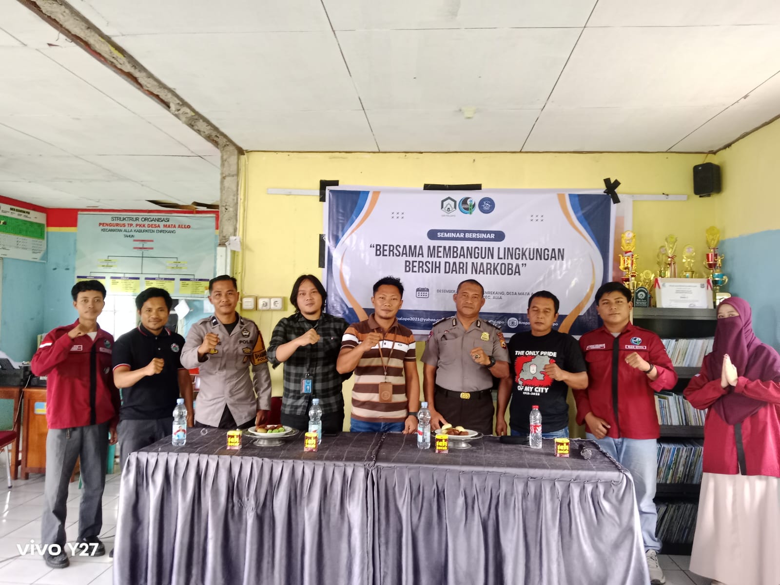 Enrekang , fokustime.id- Kanit Binmas Polsek Alla Aiptu Wahyudi bersama Bhabinkamtibmas Aipda Erwin Galang menghadiri kegiatan Seminar Bersinar (Bersih dari Narkoba) yang diselenggarakan oleh Himpunan Mahasiswa Program Studi Bimbingan dan Konseling Islam (BKI). Kegiatan tersebut berlangsung di Aula Kantor Desa Mata Allo Kecamatan Alla Kabupaten Enrekang, Minggu 14/12/2025 Pukul 10.00 Wita.