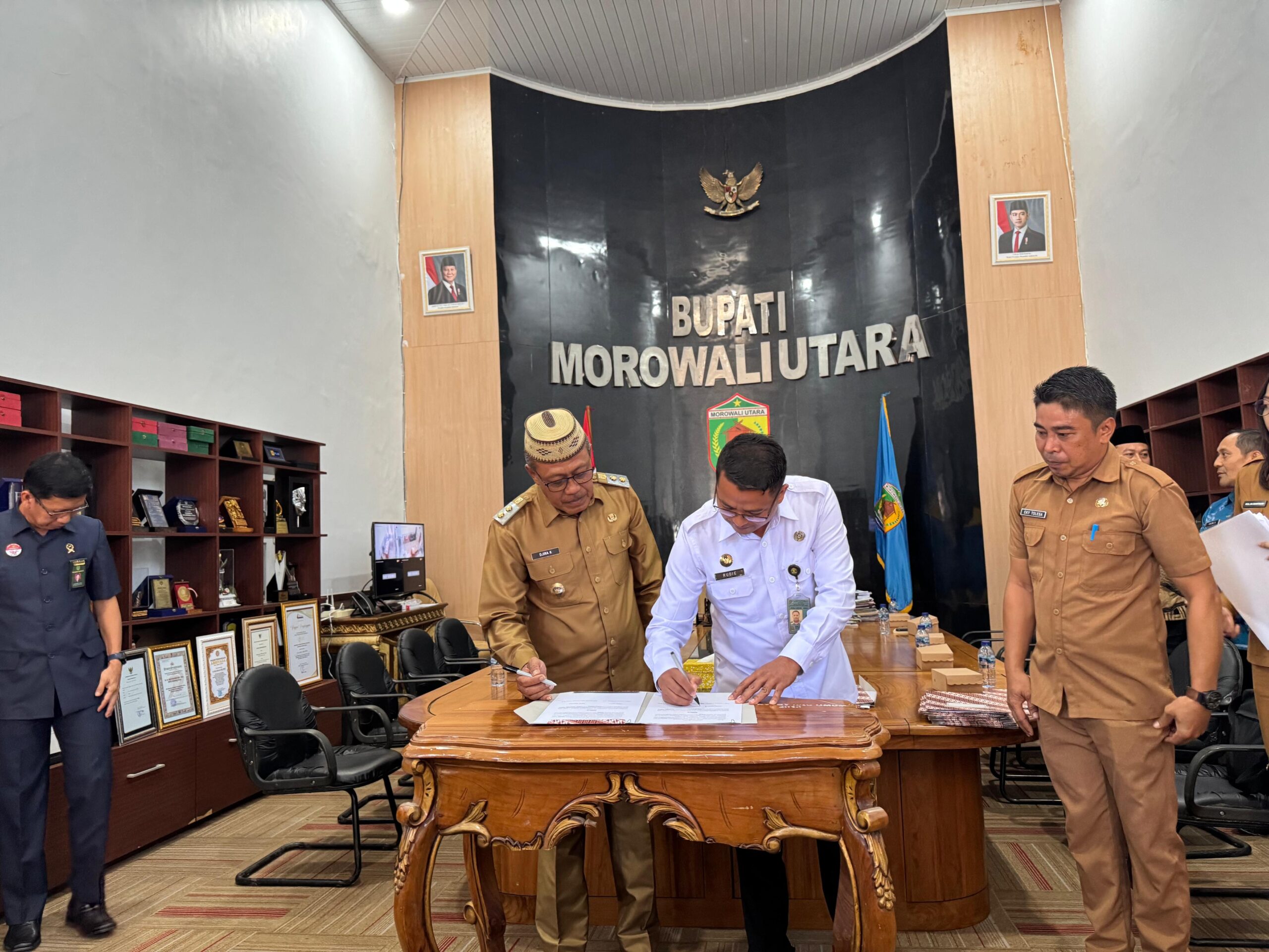 Morowali Utara, fokustime.id— Selasa, 14 Oktober 2025, Pemerintah Kabupaten Morowali Utara melaksanakan kegiatan penandatanganan Perjanjian Kerja Sama (PKS) pembentukan Mall Pelayanan Publik (MPP) yang berlangsung di Ruang Pola Kantor Bupati Morowali Utara yang dibuka secara langsung oleh Wakil Bupati Morowali H. Djira K, S.Pd, M.Pd. Kegiatan ini menjadi langkah strategis dalam memperkuat sinergi antarinstansi serta meningkatkan kualitas layanan terpadu kepada masyarakat di wilayah Morowali Utara, yang akan ditindaklanjuti dengan peresmian MPP pada 23 Oktober 2025 bertepatan dengan Hari Ulang Tahun Kabupaten Morowali Utara, sekaligus dimulainya seluruh pelayanan di MPP Morowali Utara. Kegiatan ini merupakan bagian dari upaya mewujudkan pelayanan publik yang cepat, transparan, dan terintegrasi di satu lokasi.
