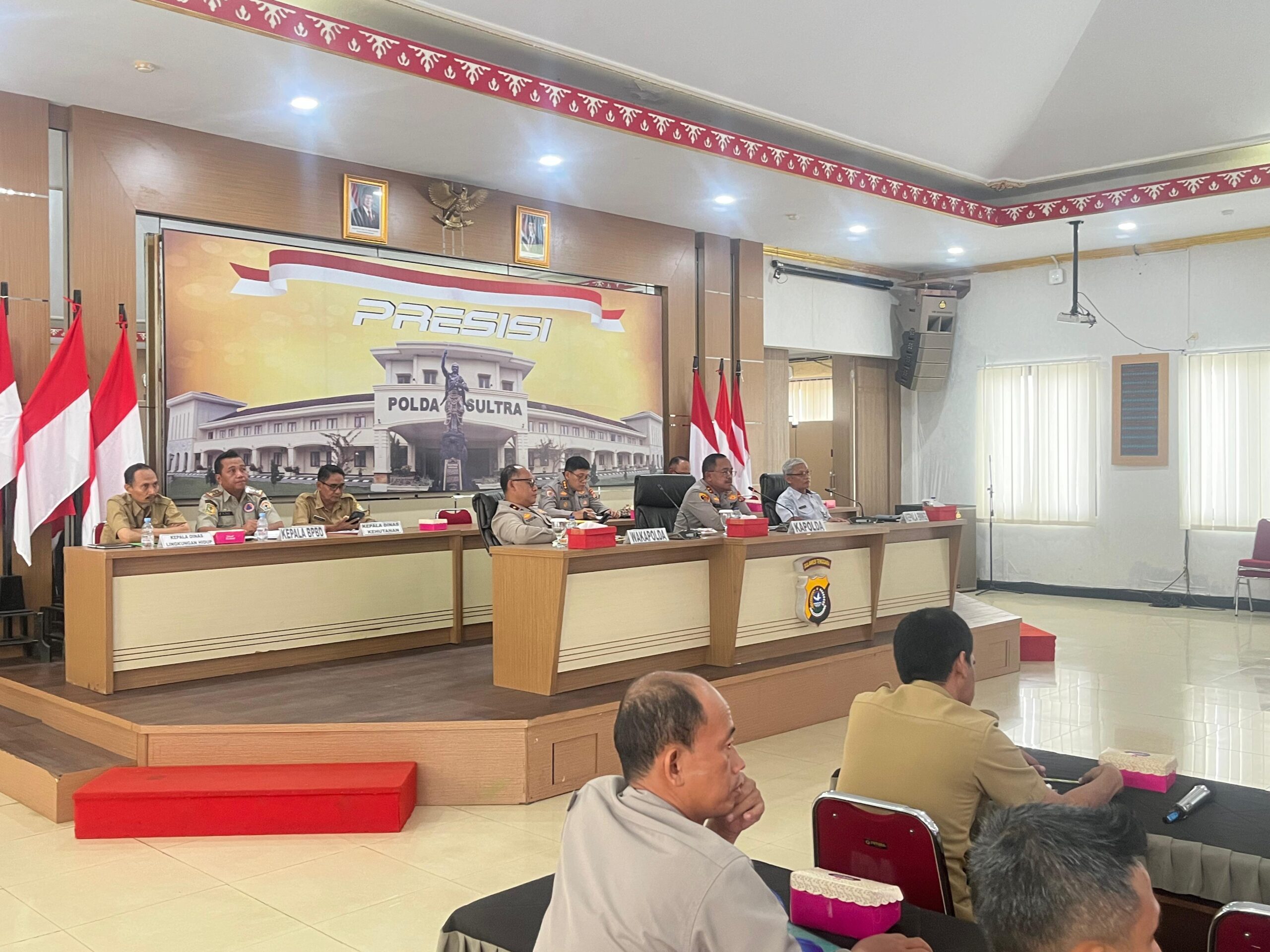 Kegiatan yang berlangsung pukul 15.00 WITA hingga selesai tersebut dilaksanakan melalui sambungan zoom meeting dan dipusatkan di Aula Dhacara Polda Sultra. Arahan nasional ini turut melibatkan sejumlah kementerian dan lembaga strategis, di antaranya Kementerian Lingkungan Hidup, Kementerian Kehutanan, Badan Nasional Penanggulangan Bencana, serta BMKG.