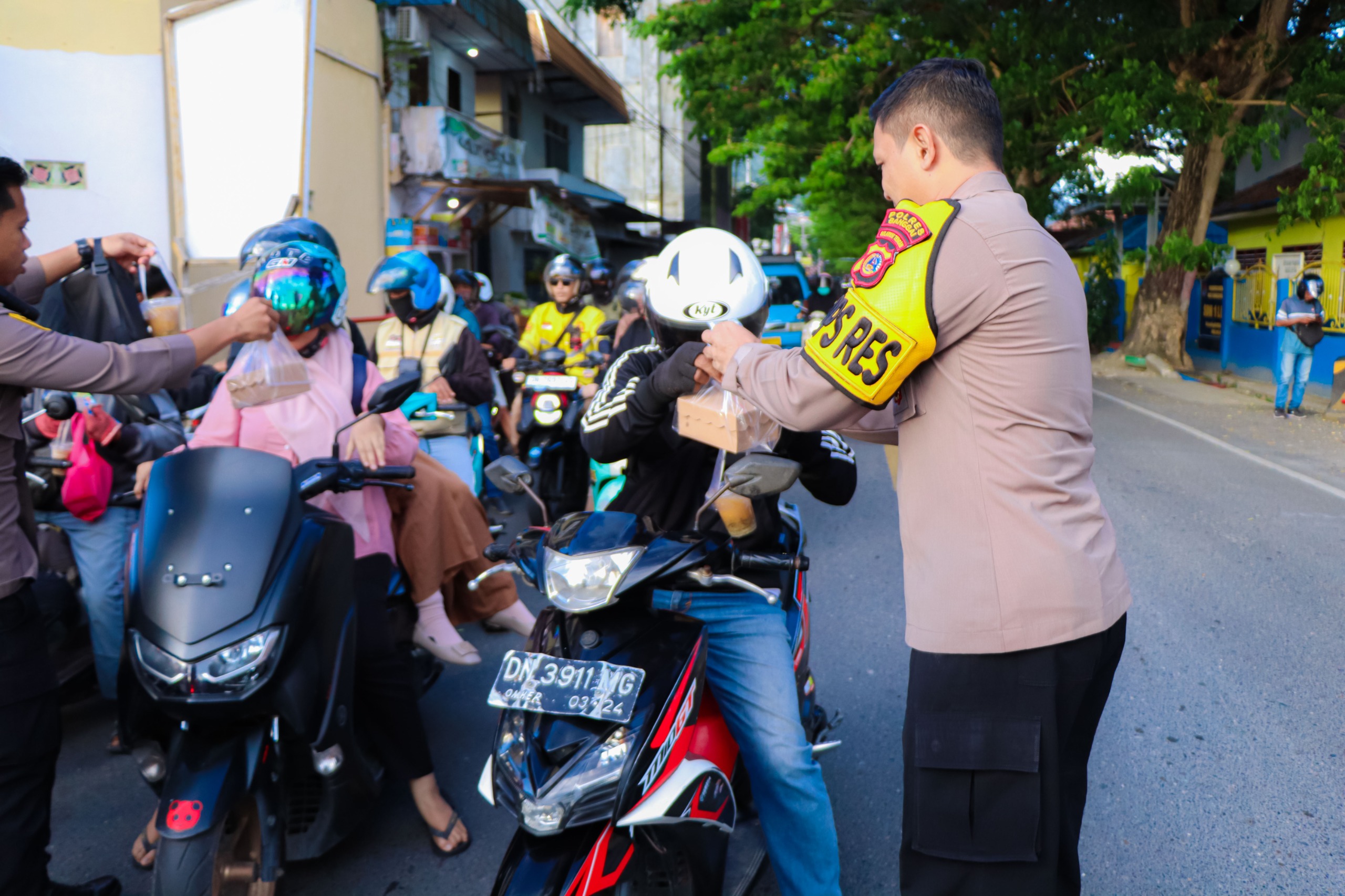 Menjelang waktu berbuka puasa, Kapolres dan Bhayangkari turun membagikan paket makanan kepada pengendara, pejalan kaki, serta warga yang melintas. Suasana penuh kehangatan dan kebersamaan tampak dalam interaksi antara personel dan masyarakat.