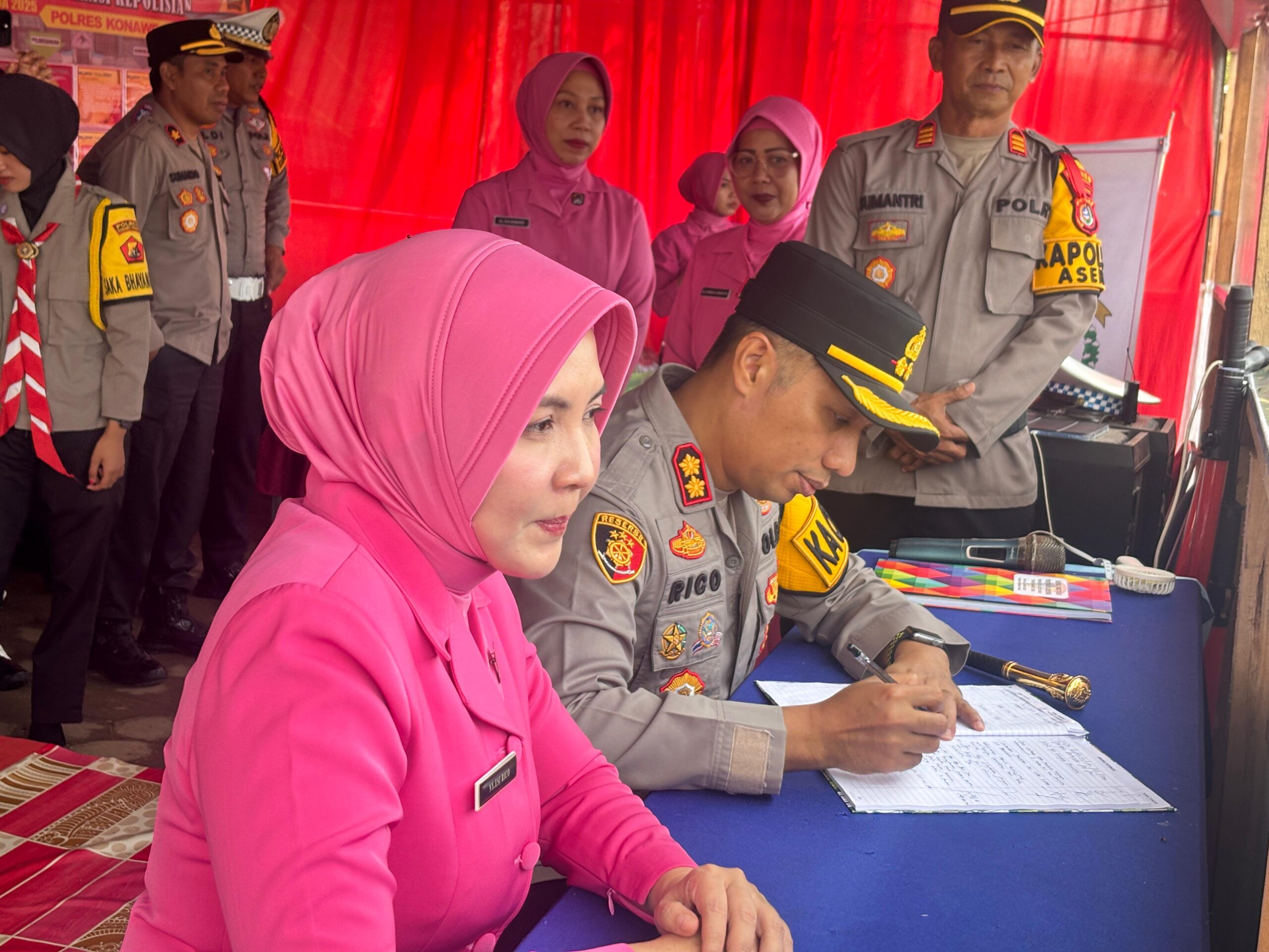 Konawe Utara ,fokustime.id— Kepala Kepolisian Resor Konawe utara AKBP Rico Fernanda, S.H., S.I.K., M.H bersama Ketua Bhayangkari cabang Ny. Esi Rico Fernanda pejabat utama serta pengurus bhayangkari melaksanakan pengecekan kondisi pos pengamanan natal dan tahun baru, selasa (30/12/25)