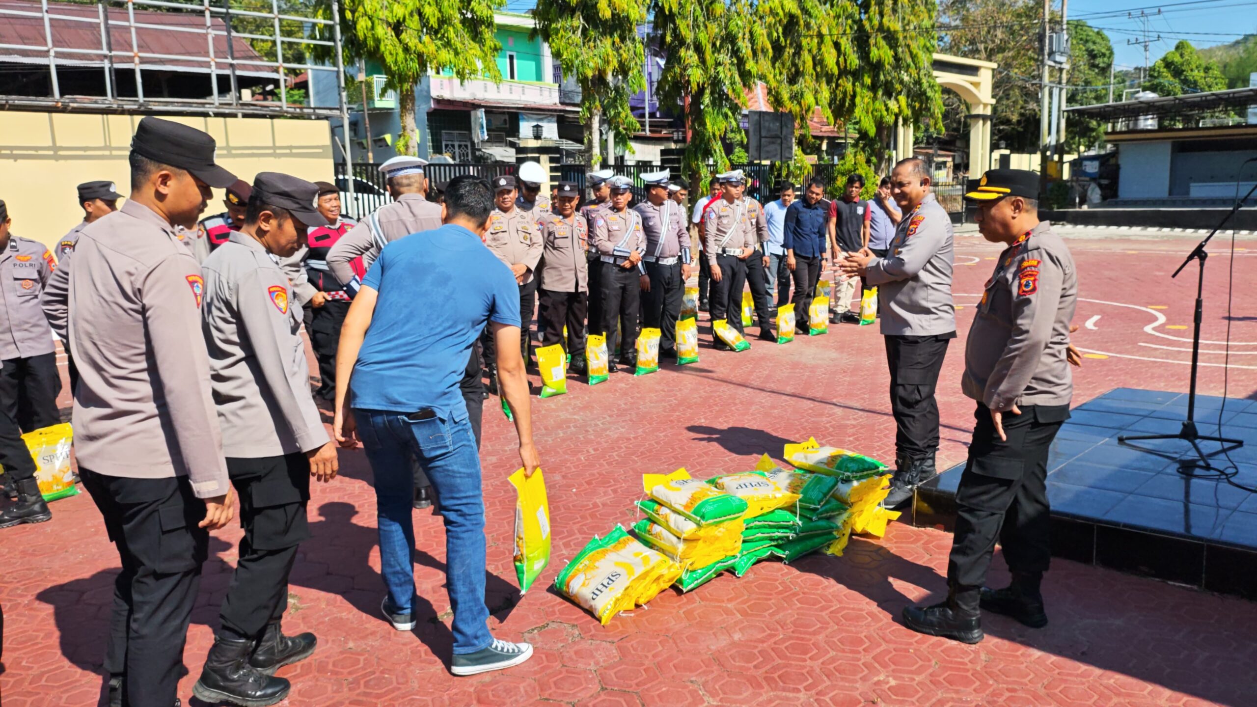 Dalam kegiatan penuh keakraban tersebut, setiap personel menerima 1 karung beras berisi 5 kilogram. Suasana tampak hangat dan penuh semangat, disertai senyum gembira para anggota yang menerima langsung pemberian dari Kapolres.