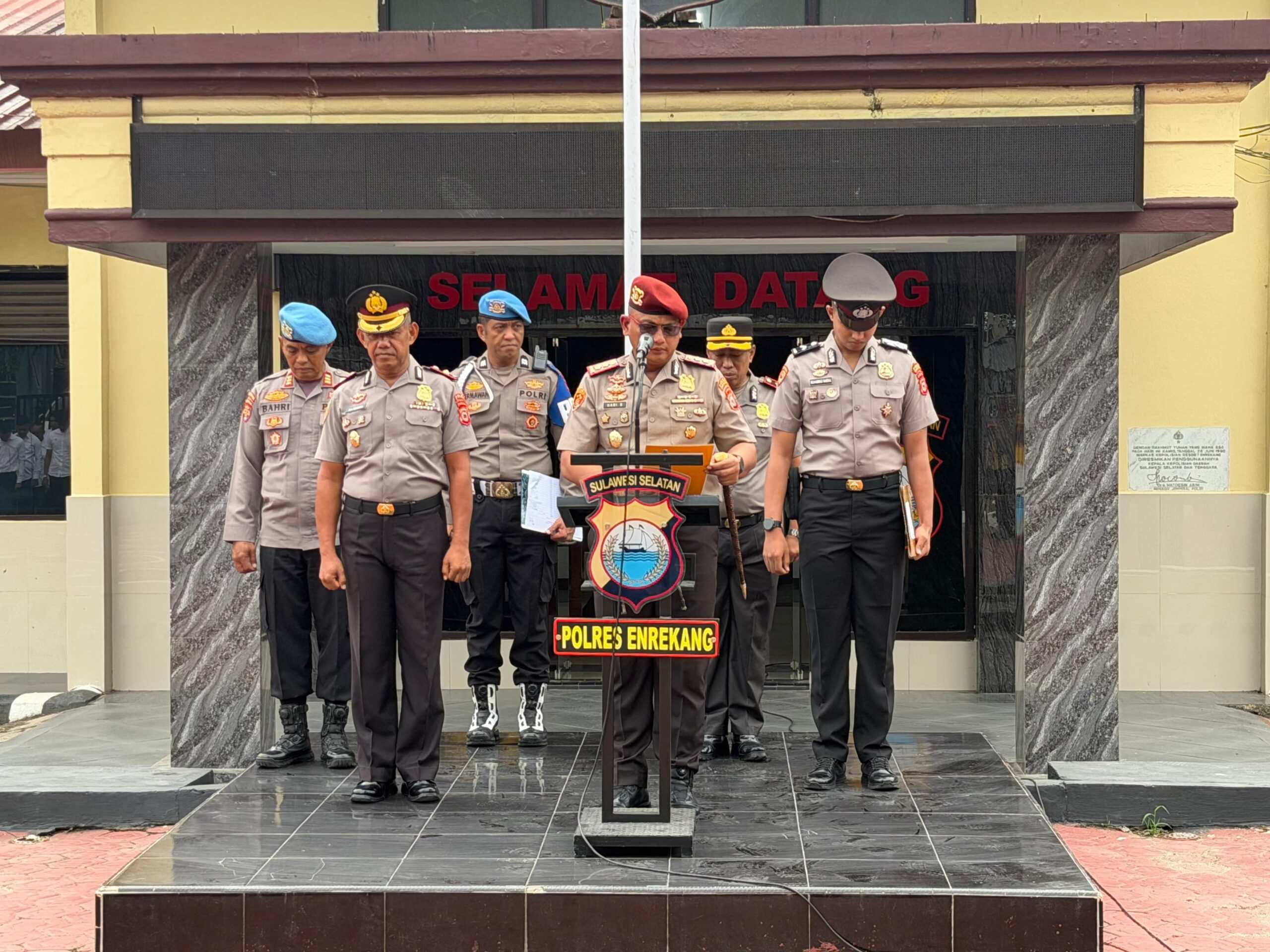 Menutup arahannya, Kapolres Enrekang menyampaikan penegasan yang sarat makna kepemimpinan, bahwa “tidak ada anggota yang salah, melainkan pimpinan yang salah /belum sepenuhnya membimbing.” Ia menekankan pentingnya empati dan kepedulian dalam kepemimpinan, di mana pimpinan harus hadir dan peduli terhadap kondisi anggotanya.