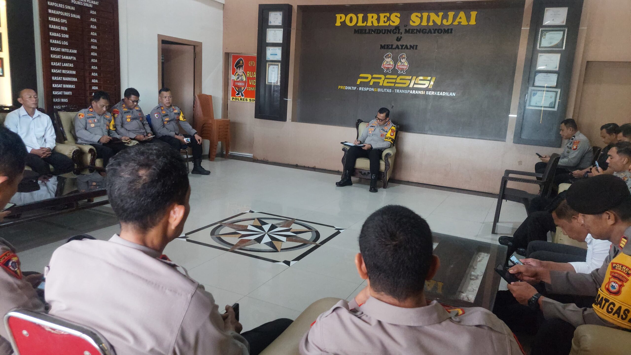 Rapat ini dihadiri para Pejabat Utama (PJU), para Kasat, Kasi, serta perwira staf di lingkungan Polres Sinjai.