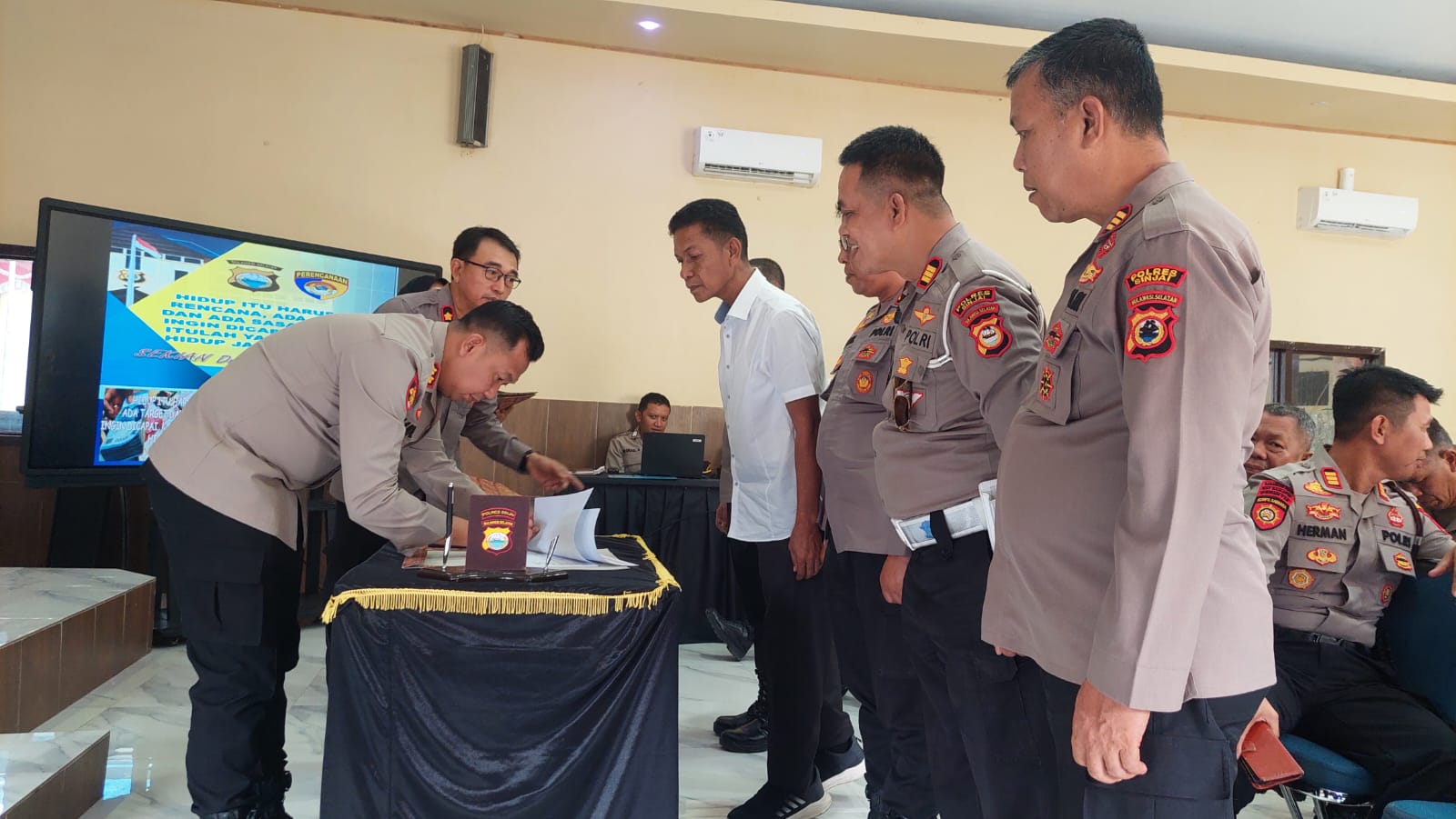 Kapolres Sinjai yakni Wakapolres Sinjai Kompol Tamar, S.Sos dan Kabag Ren Polres Sinjai Kompol Abd. Majid, S.Sos dan dihadiri para Kabag, Kasat, Kapolsek, Kasi, dan perwira staf Polres Sinjai.