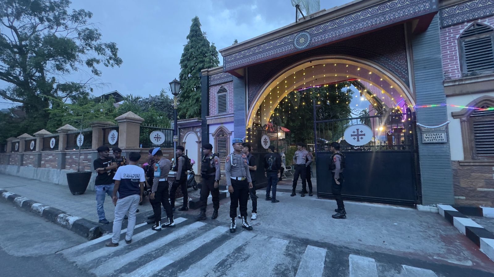 Pengamanan dilakukan melalui penempatan personel di lokasi gereja serta patroli di sejumlah titik guna memastikan situasi tetap aman dan kondusif selama pelaksanaan ibadah berlangsung.