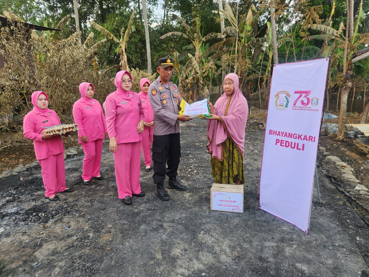 Kapolsek Ganra Bersama Bhayangkari Salurkan Bantuan Sosial untuk Korban Kebakaran di Desa Belo