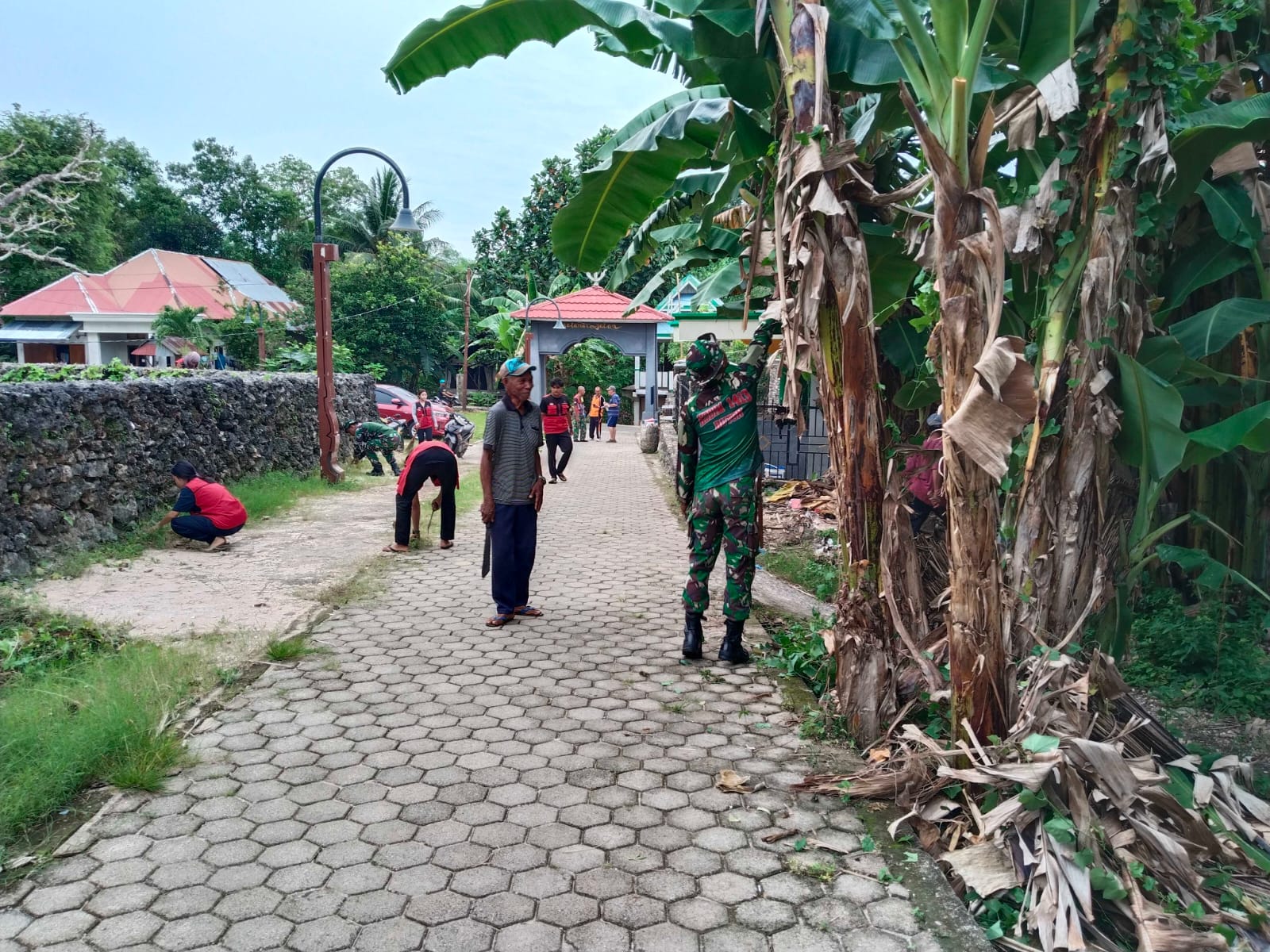 Dalam kegiatan tersebut, personel Koramil dan warga terlihat kompak membersihkan area sekitar masjid, mulai dari memangkas ranting pohon, membersihkan dedaunan kering, hingga mengangkut sampah yang berada di sisi jalan dan halaman masjid. Suasana kebersamaan tampak jelas sepanjang kegiatan berlangsung.