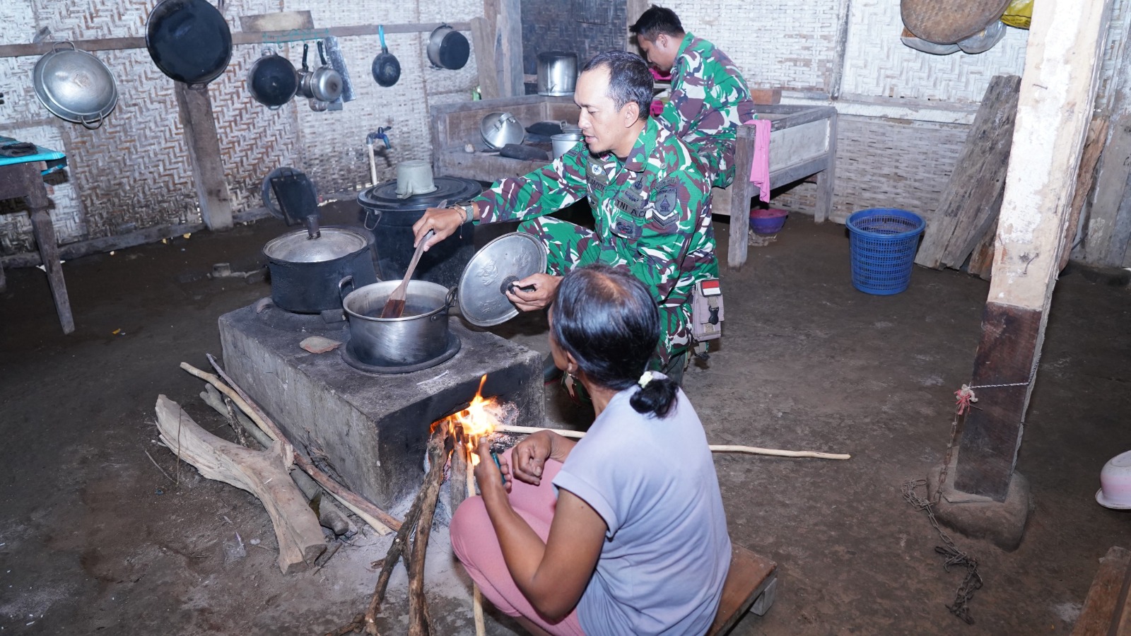 Salah satu wujud kebersamaan dan kedekatan tersebut terlihat ketika anggota Satgas TMMD ke 127 Kodim 0808/Blitar membantu warga memasak, Rabu (4/3/2026).