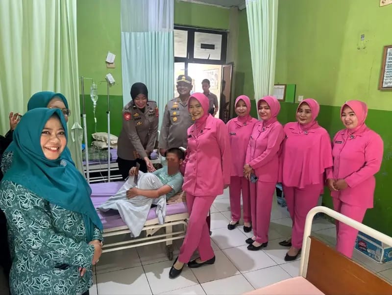 Dengan penuh perhatian, Ny. Anie Hari Budiyanto bersama anggota Bhayangkari menyapa para pasien dan keluarga, serta memberikan dukungan semangat kepada tenaga medis yang sedang bertugas.